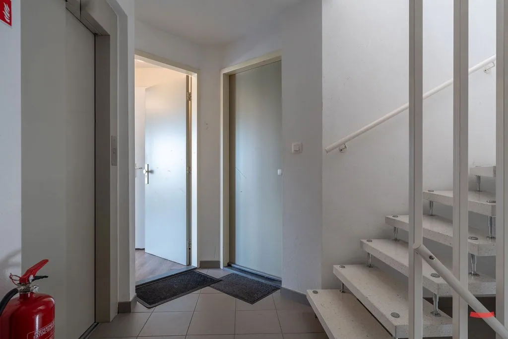 Via de inkomhal – met gastentoilet – stappen we meteen de woonkamer met open keuken in. Geen balzaal, maar een neutrale basis voor je trendy interieur. Check ook hoe licht je woonkamer is, want de achterzijde bestaat volledig uit ramen, en geeft je toegang naar je grote balkon. De keuken is netjes en voorzien van alle nodige snufjes. (En die lieve mama kan het toch niet laten om je af en toe een ovenschotel te brengen, toch?)