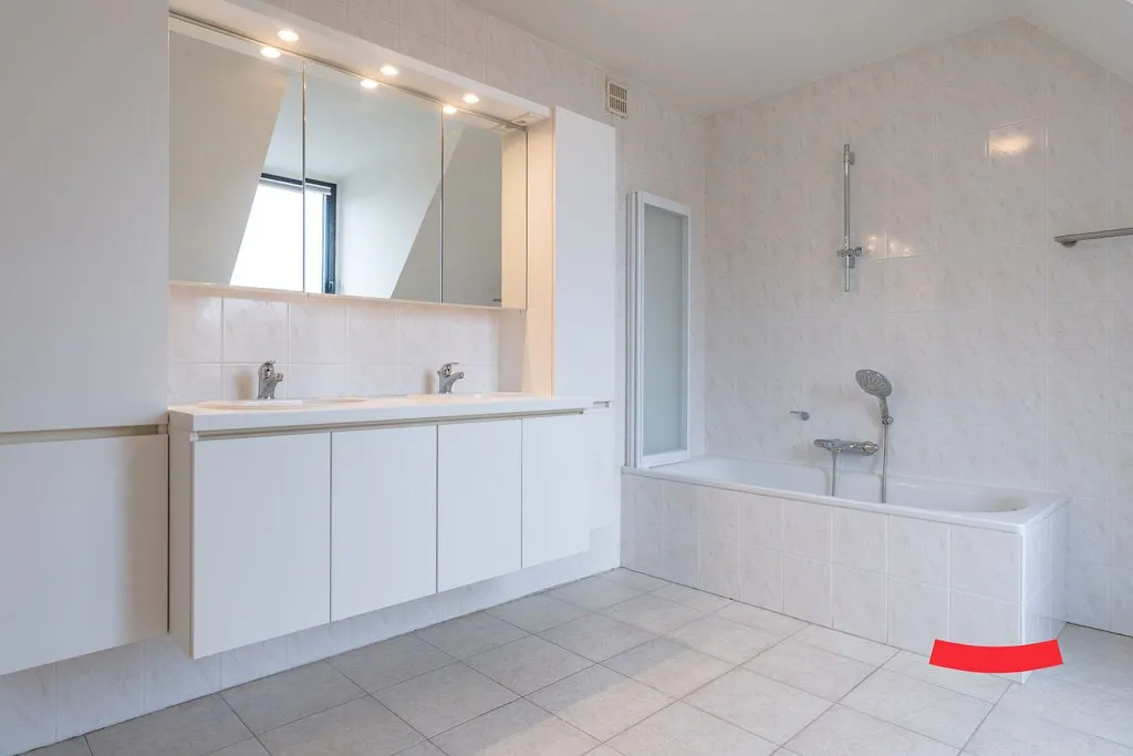 Tenslotte is er een grote slaapkamer met aansluitend de badkamer. Deze is met bad (met douchescherm) en een dubbele wastafel. Het toilet is apart.