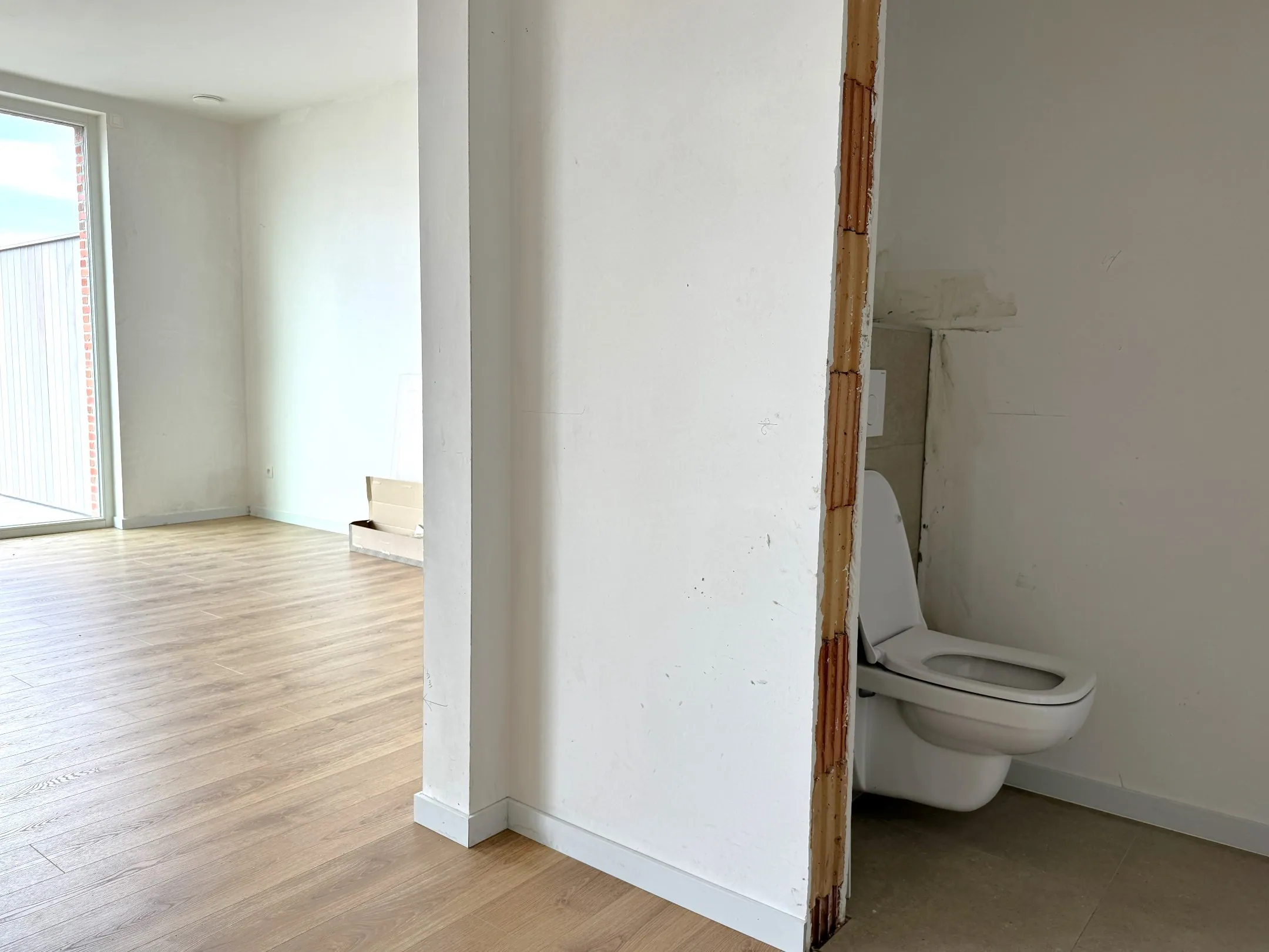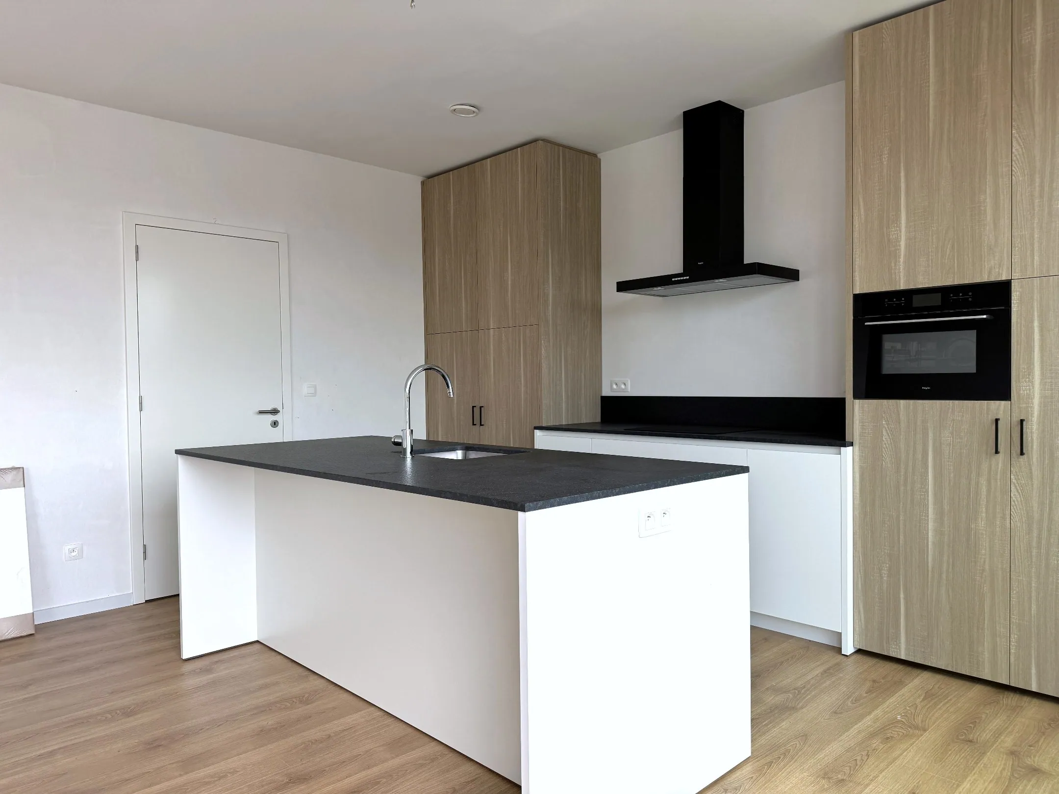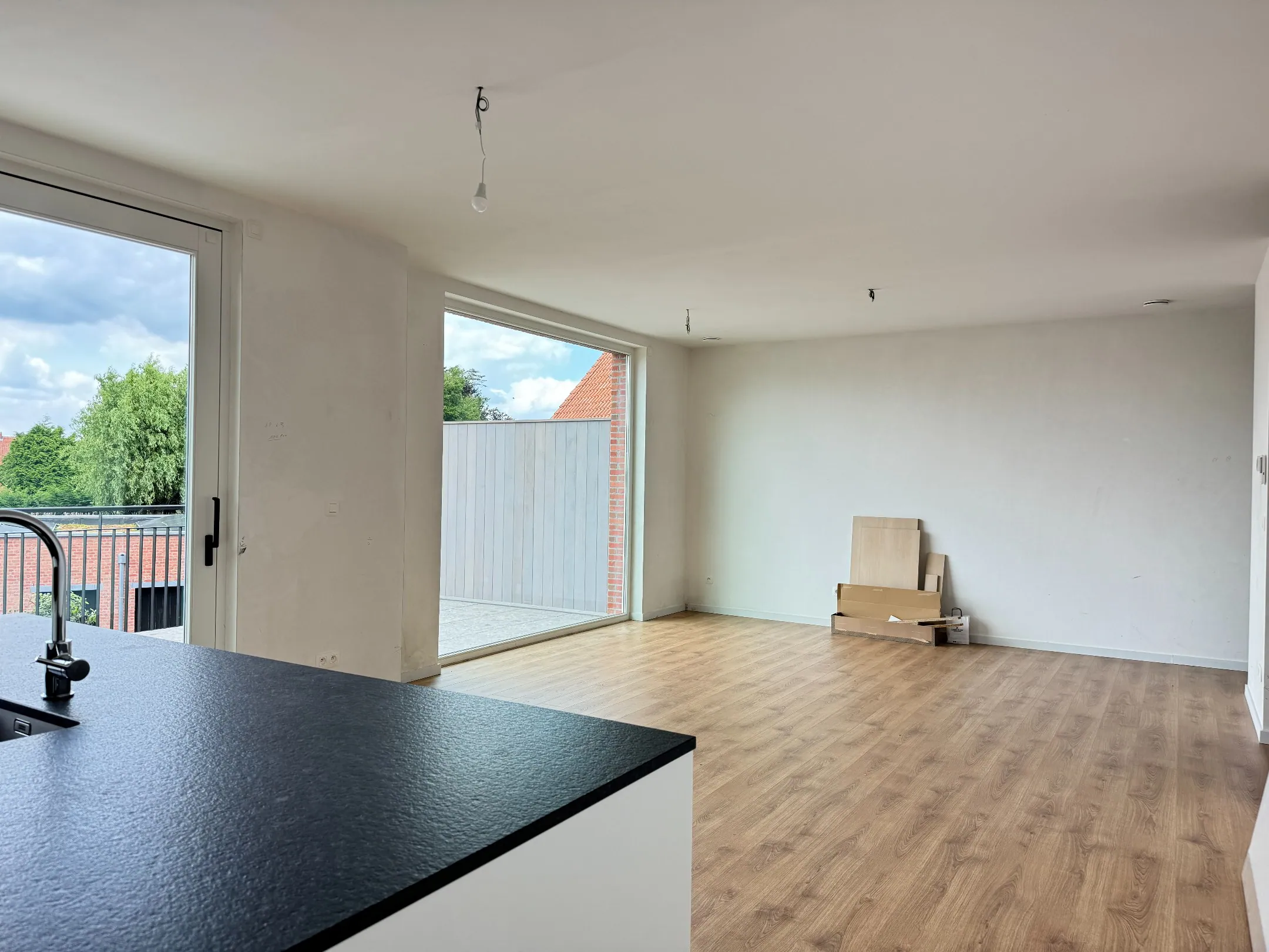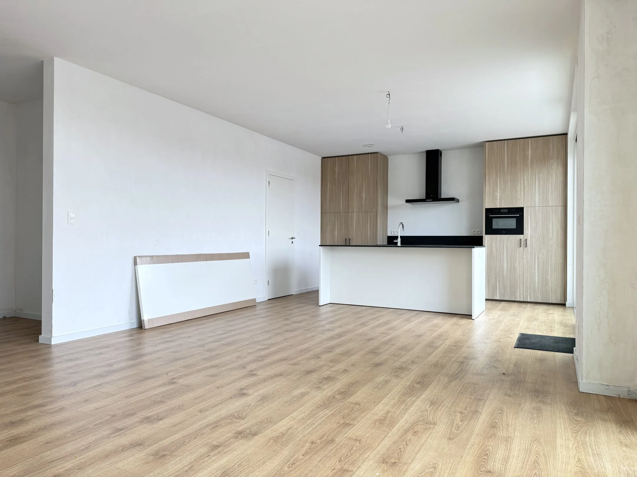 De woonkamer met open keuken zit aan de achterzijde. Duurzaam en tot in de puntjes afgewerkt, maar voor ook….verrassend groot voor een appartement, toch? En in de zomer zwier je de schuifdeur open, en wordt je woonkamer nog eens dubbel zo groot. Want heb je dat grote balkon al gespot?