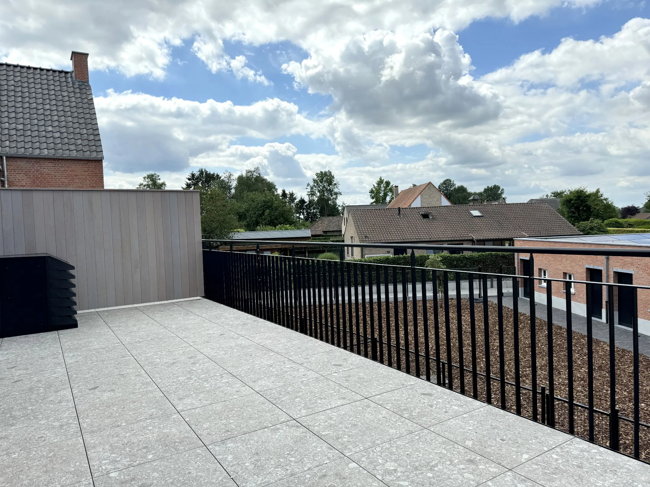En dan dat balkon! Eindelijk nog eens een balkon waar de hele familie een plekje aan tafel heeft. Zalig toch? Een toffe bonus is de gemeenschappelijke tuin achter het gebouw. Een groen uitzicht, maar tegelijkertijd geen gedoe met onderhoud. Je hoeft enkel maar ’n keer naar de tuinman zwaaien als ‘ie langskomt. (By the way; de tuinen worden nog aangelegd).