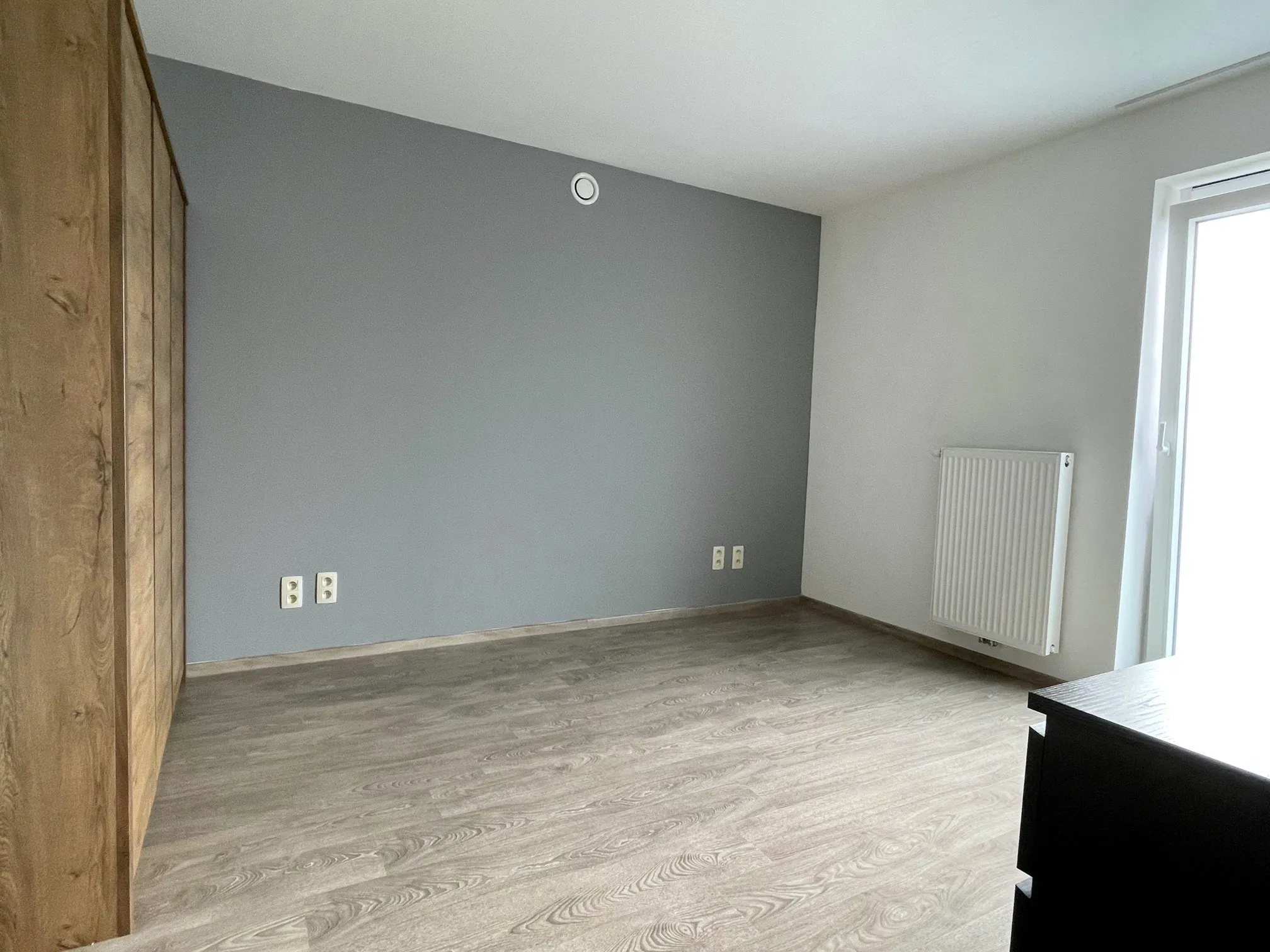 Verder werd het appartement vollédig geschilderd, voorzien van verlichting én gordijnrails.