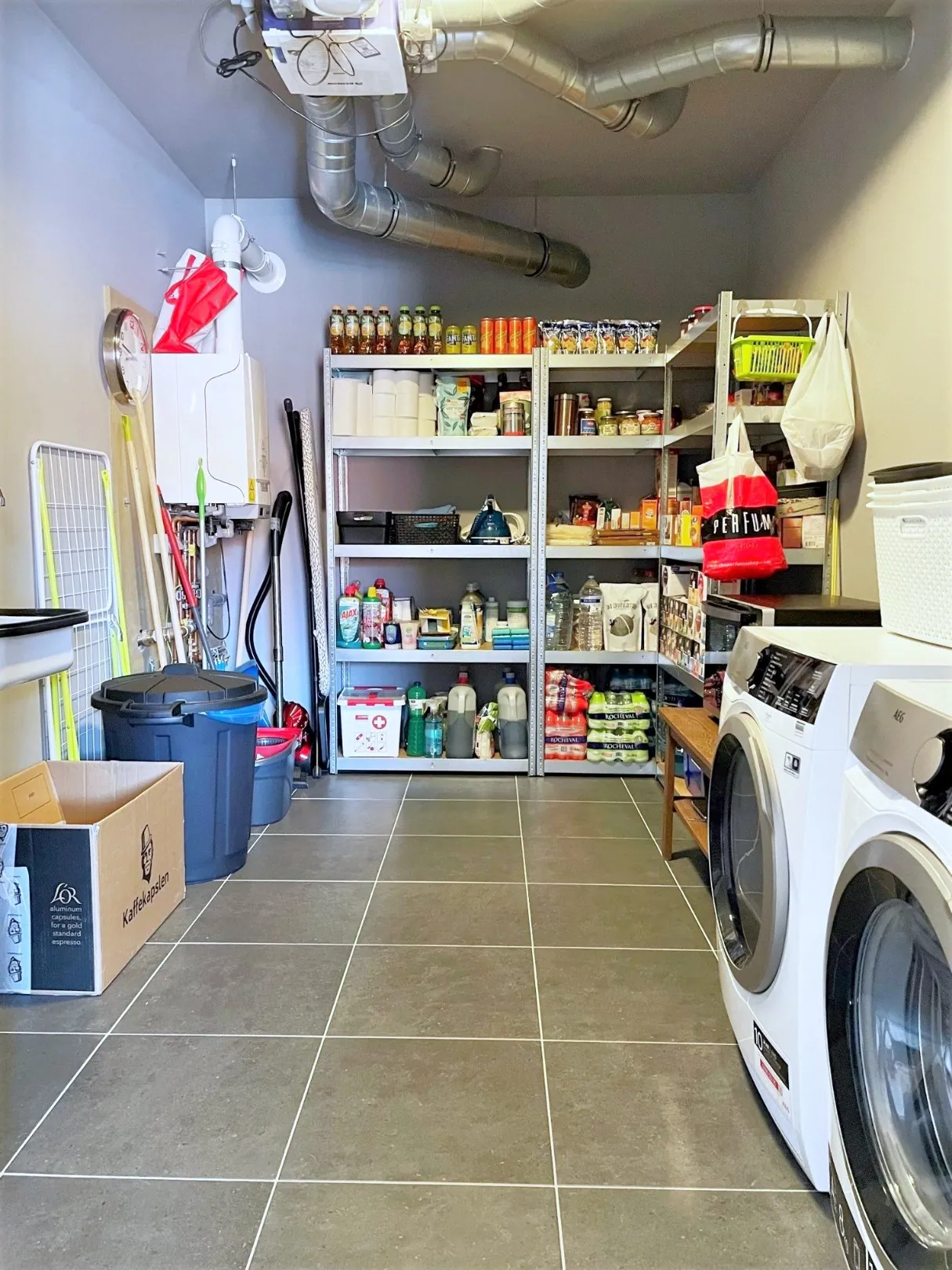 We wandelen binnen via de – jawel, goed opgelet – lekker ruime inkomhal. Superhandig ... voor het plaatsen van een extra kast of vestiaire, en erg toegankelijk voor bv. een rollator. Verder komen we in de woonkamer met open keuken, voorzien van alle snufjes én een gigantische bergplaats.
