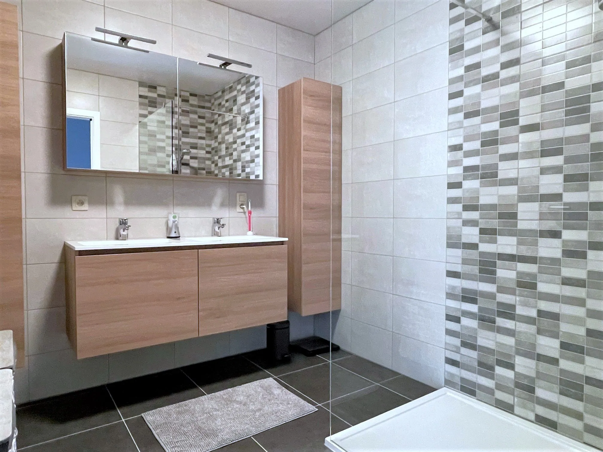 Slapen doe je aan de achterkant. Er zijn 2 slaapkamers, en verder is er nog een badkamer met grote inloopdouche. Het toilet tenslotte is apart.