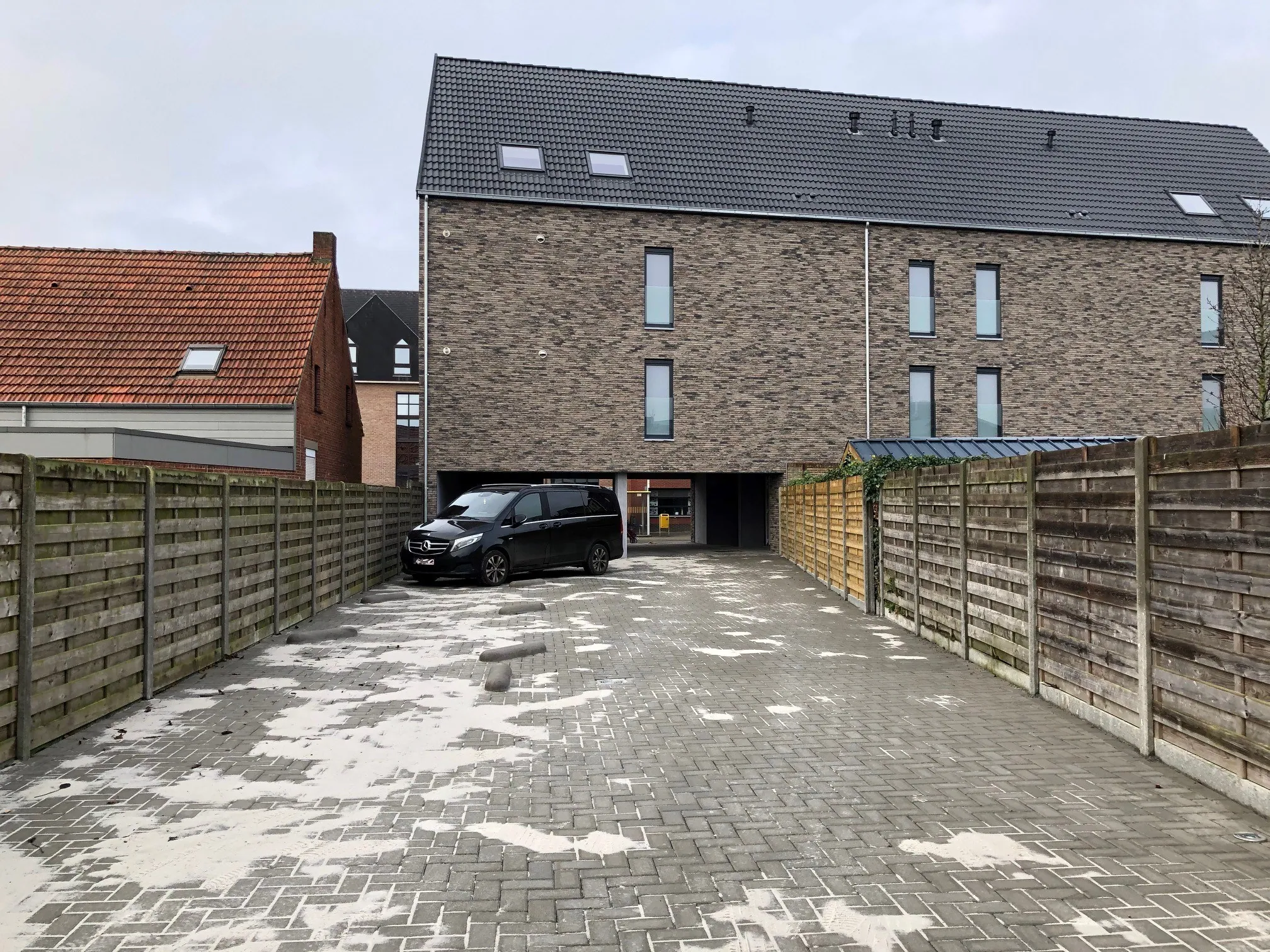 Achter het gebouw werd een eigen carport én parkeerplaats voorzien. Verder is er een gemeenschappelijke bergruimte om vuilnisbakken en fietsen droog te stallen.