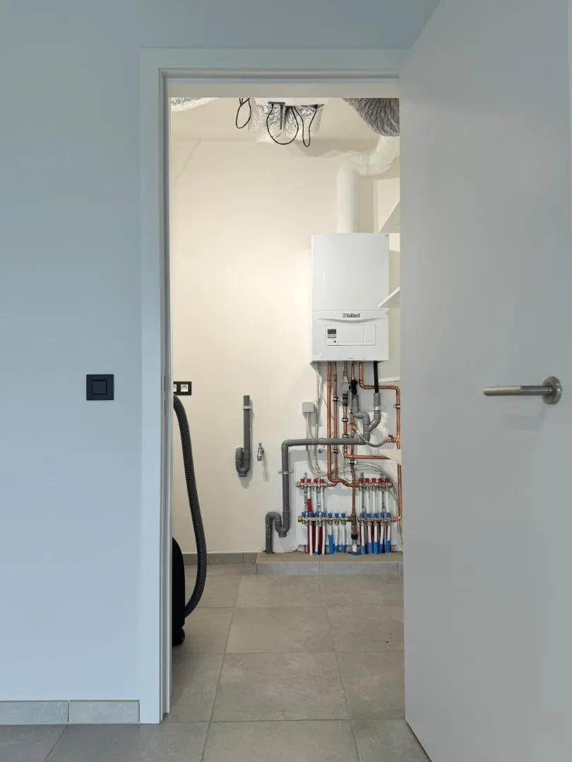 Een grote keuken heeft ook ’n grote bergplaats nodig, zeg je? Jawel hoor, die is er. Zelfs 2, of wat had je gedacht? Naast de keuken is een handige voorraadruimte (met kastenwand), en aan de andere kant is nog een bergplaats met aansluiting voor de wasmachine.