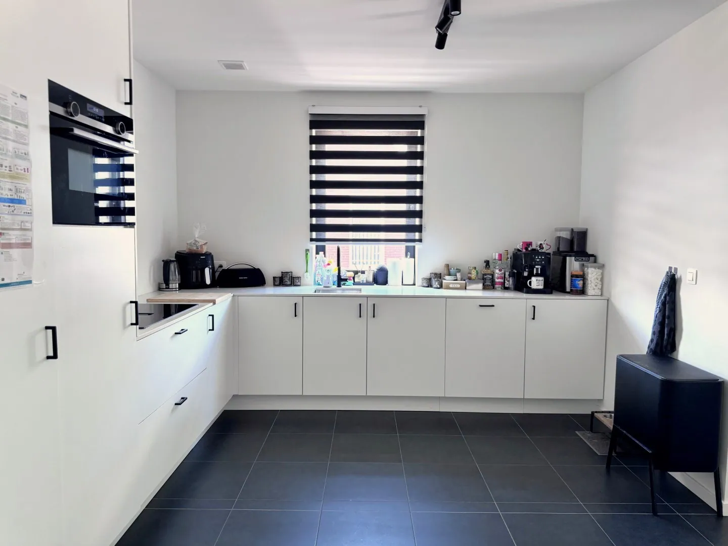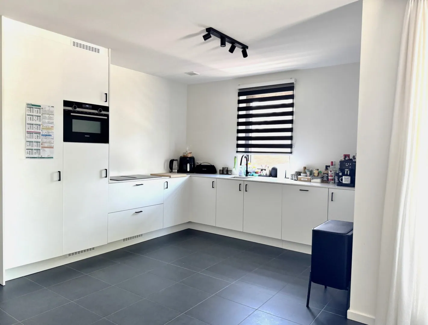 We vallen met de deur in huis: wat een zee van ruimte! En dat wordt nog eens extra in de verf gezet door de grote ramen rondom. De keuken werd ... hoogwaardig afgewerkt, is voorzien van alle snufjes én een heleboel handige kasten. Nog wat extra voorraadjes? No problemo, want ook in de naastgelegen bergruimte werden kasten geplaatst. Je televisie vindt trouwens meteen z’n plekje in de woonkamer, want ook die kast werd voor jou voorzien.
