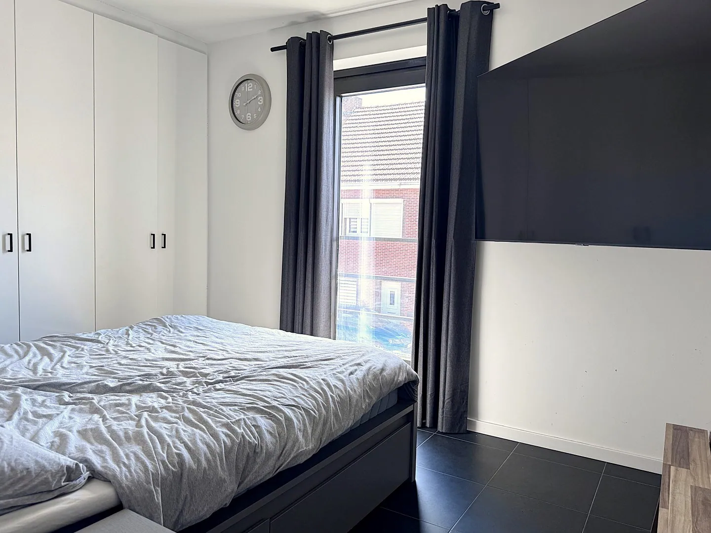 3. Dit appartement werd écht instapklaar opgeleverd. De schilder heeft z’n best gedaan, lampjes worden bevestigd én zelfs je televisiemeubel en kasten werden al voorzien.