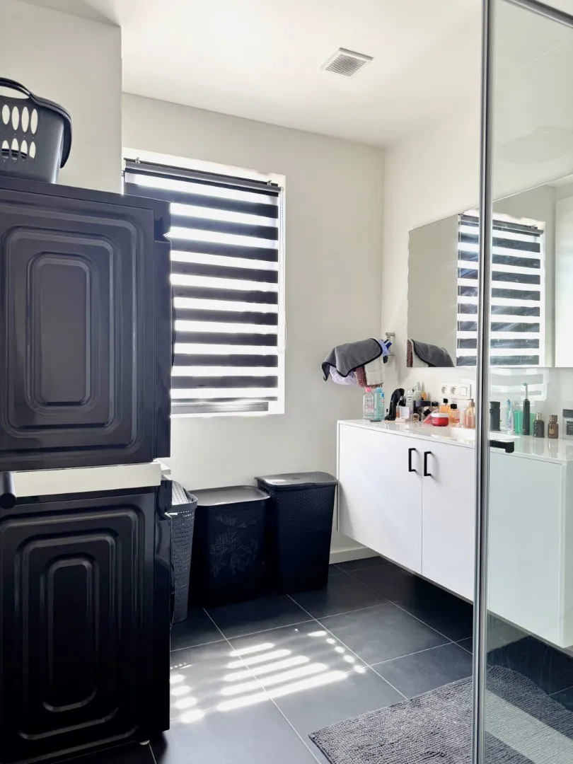 Aan de voorzijde van het appartement zijn 2 slaapkamers. De grootste kamer werd voorzien van heel wat kasten, dus gooi dat winkelmandje op Zalando maar vol! Verder is er een nette badkamer met douche, en een wasplaats. Het toilet is dan weer apart.
