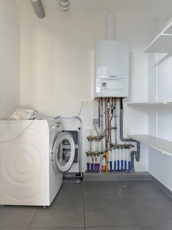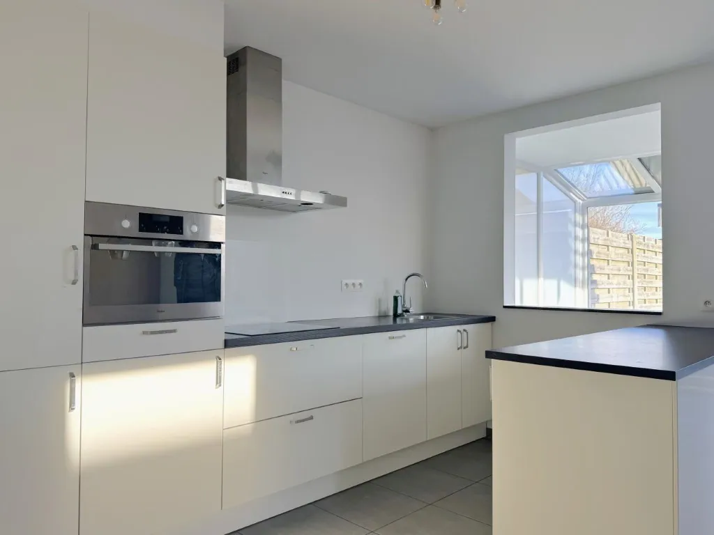 Verder een fijne, open keuken met alle nodige snufjes. En om de hoek nog een handige bergplaats. Hier zitten ook de aansluitingen voor wassen en drogen.