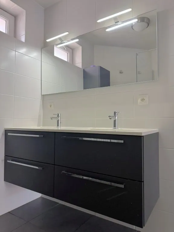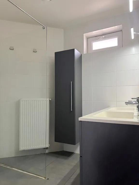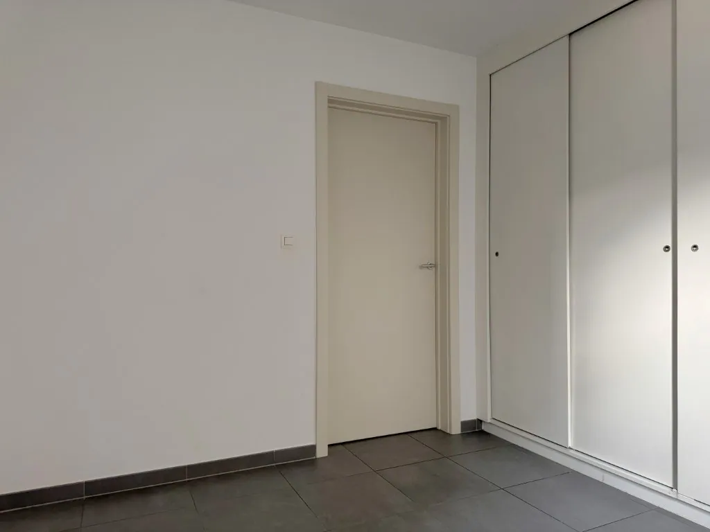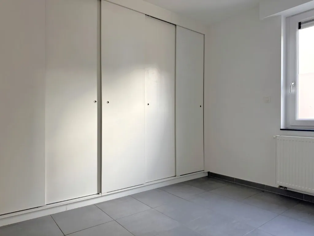 Er zijn 2 slaapkamers aanwezig. Een tikje compact, maar erg praktisch ingericht. De grootste werd voorzien al voorzien van een kastenwand. Verder de onderhoudsvriendelijke badkamer met douche, dubbel wastafel en een extra kast. Het toilet is apart.