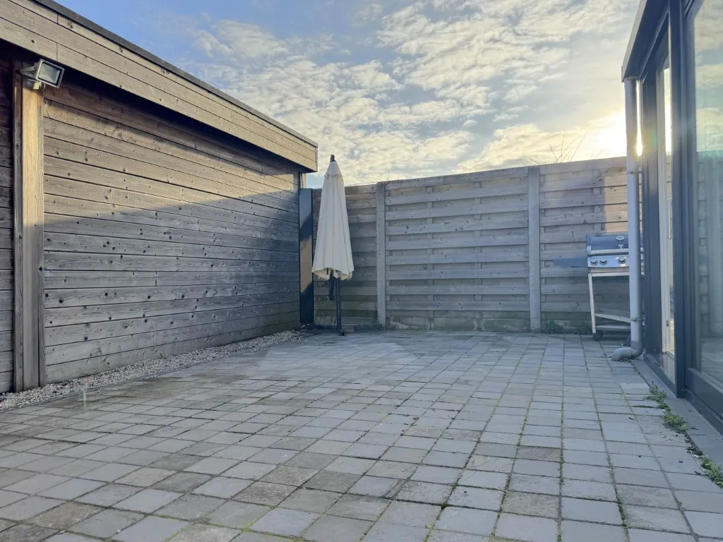 Ook in de tuin is het motto “overzichtelijk en ... onderhoudsvriendelijk”. Een fijn plekje om buiten te zitten, maar niet te veel gedoe met onderhoud. Aansluitend kan je naar je garage.