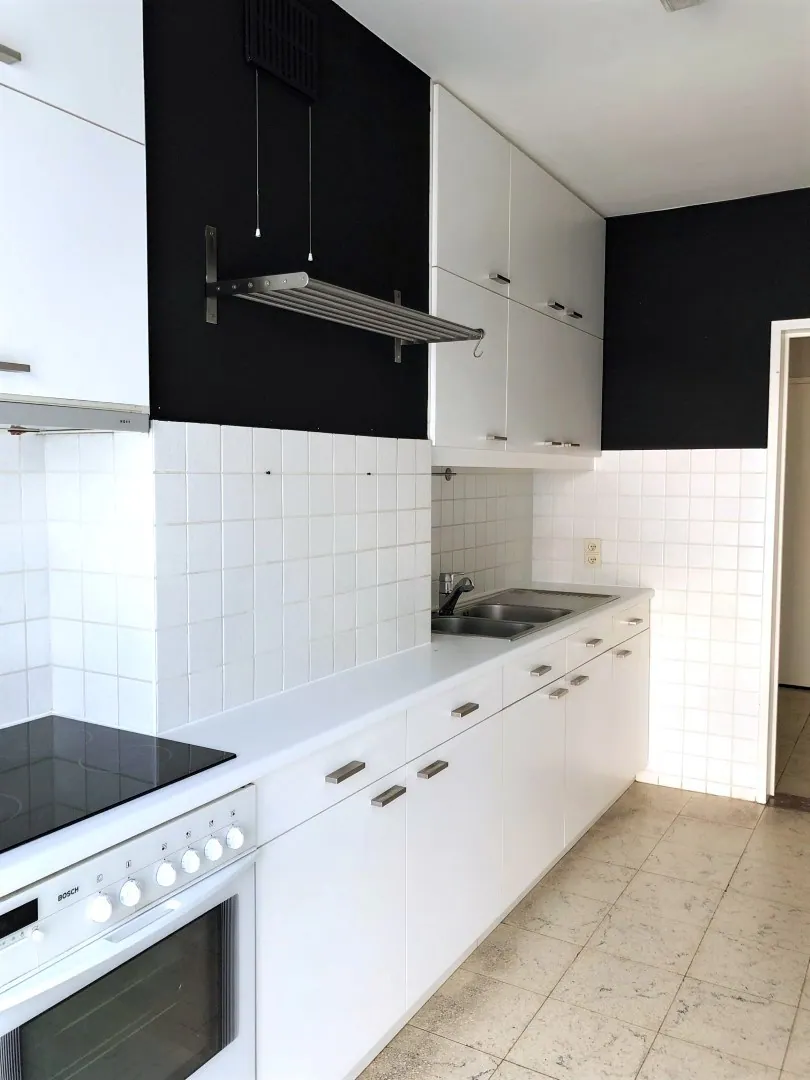 Aansluitend zit de keuken. Lekker praktisch, en voorzien van een oven, wastafel, keramisch fornuis en een dampkap. Verder is er ook een aansluiting voor vaatwasser of wasmachine.