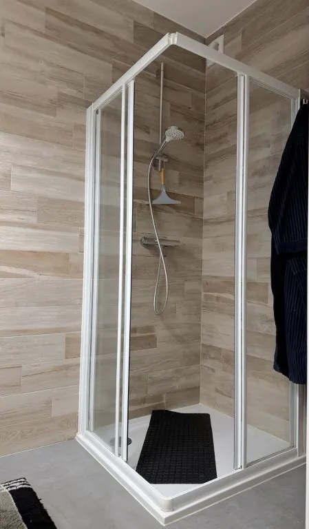 Aan de andere kant van de inkomhal zitten dan weer 2 ruime slaapkamers, met de badkamer ernaast. Deze is compact, ... maar alles wat je nodig hebt is aanwezig: een douche en een wastafel. Het toilet is apart.