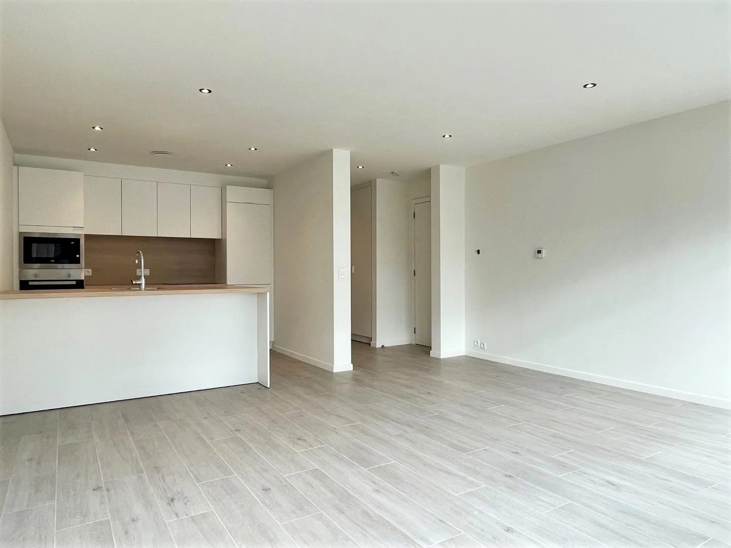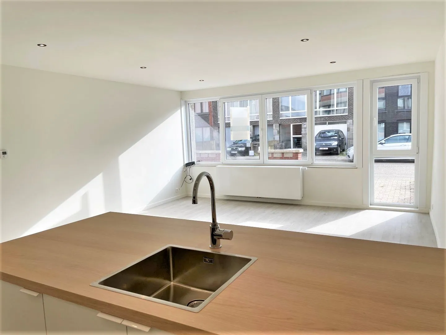 Erg lichte woonkamer met aansluitend de open keuken. Deze is voorzien van alle nodige snufjes: koelkast, vriezer, keramisch fornuis, afzuigkap, vaatwasser, oven, magnetron en een spoelbak.