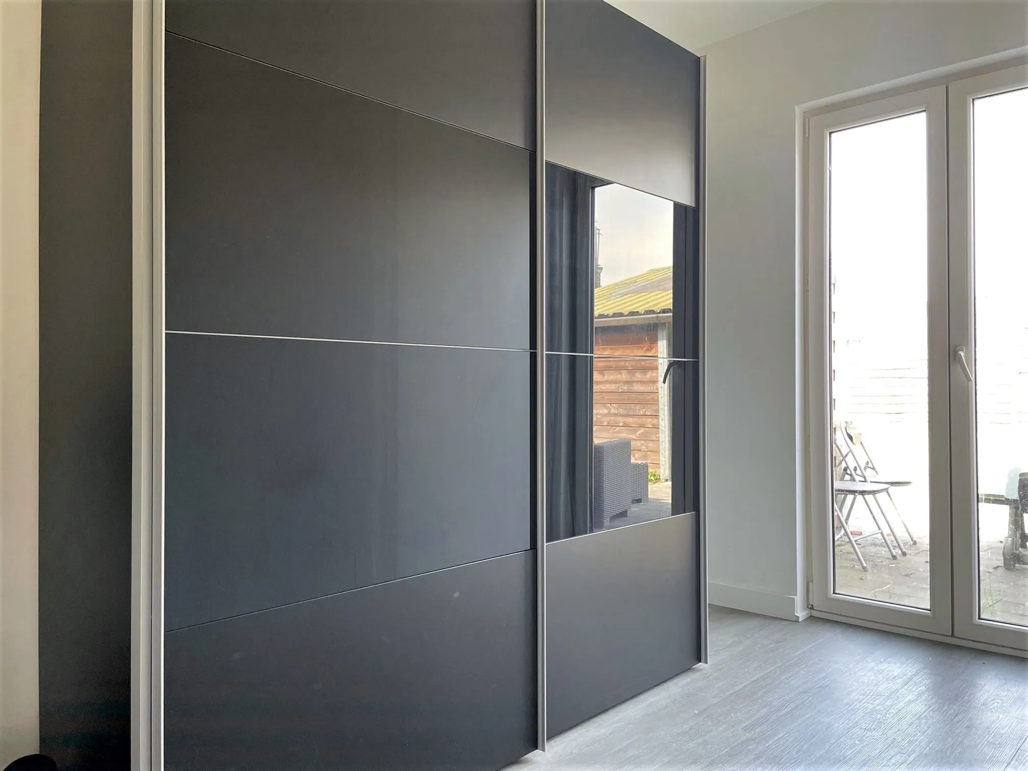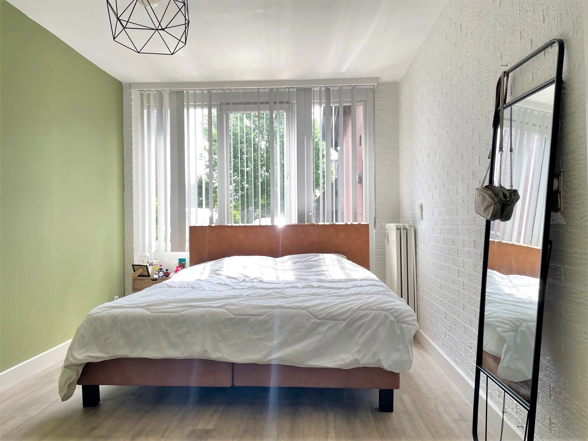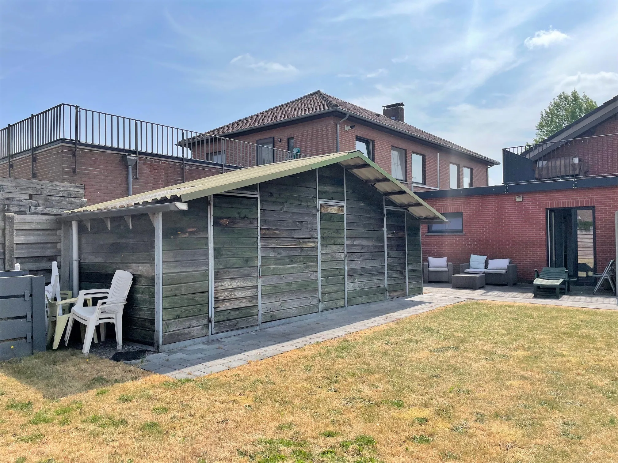 Achteraan is een 2de, kleinere slaapkamer. Een bed past er net in, maar ook superhandig als kantoor, inloopkast of hobbyruimte. Via deze kamer heb je toegang naar je grote tuin. Fietsen kan je kwijt in het tuinhuis. Je schoonmoeder ook.