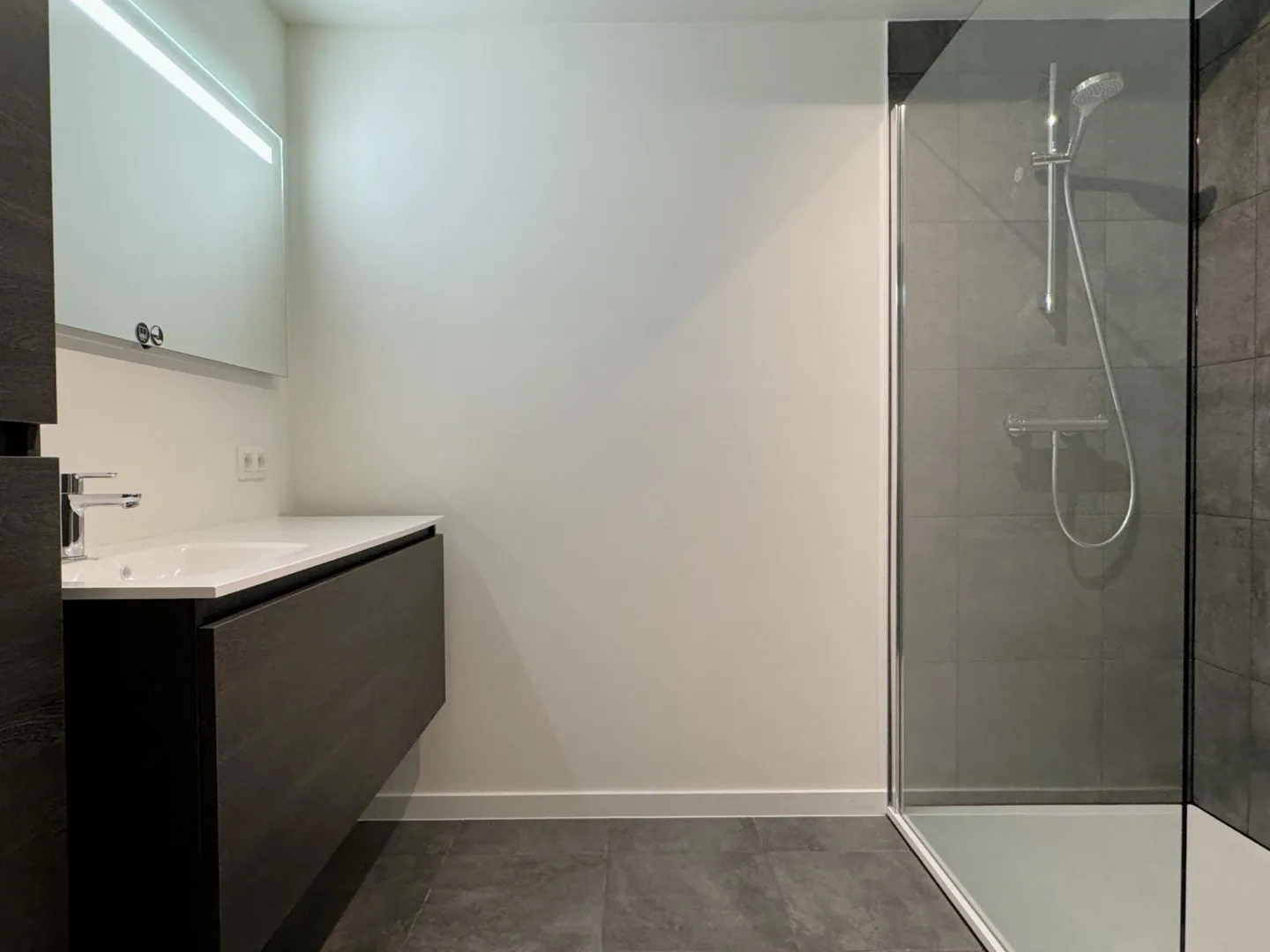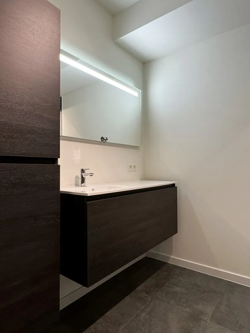 Een praktische lay-out, dit appartement! Je stapt binnen via de grote inkomhal, en da’s meteen de uitvalsbasis naar al je kamers. Lekker makkelijk en duidelijk.