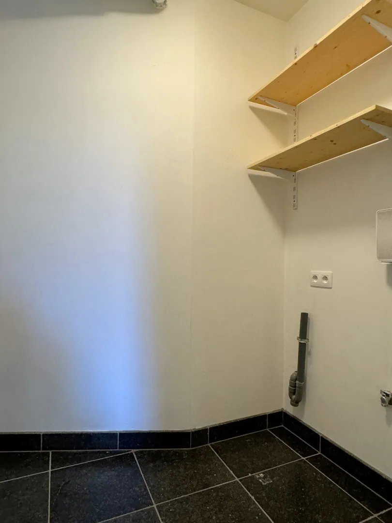 De keuken is voorzien van alle nodige snufjes, met aansluitend nog een handige bergplaats. Hier vinden we ook de aansluitingen voor wassen en drogen.