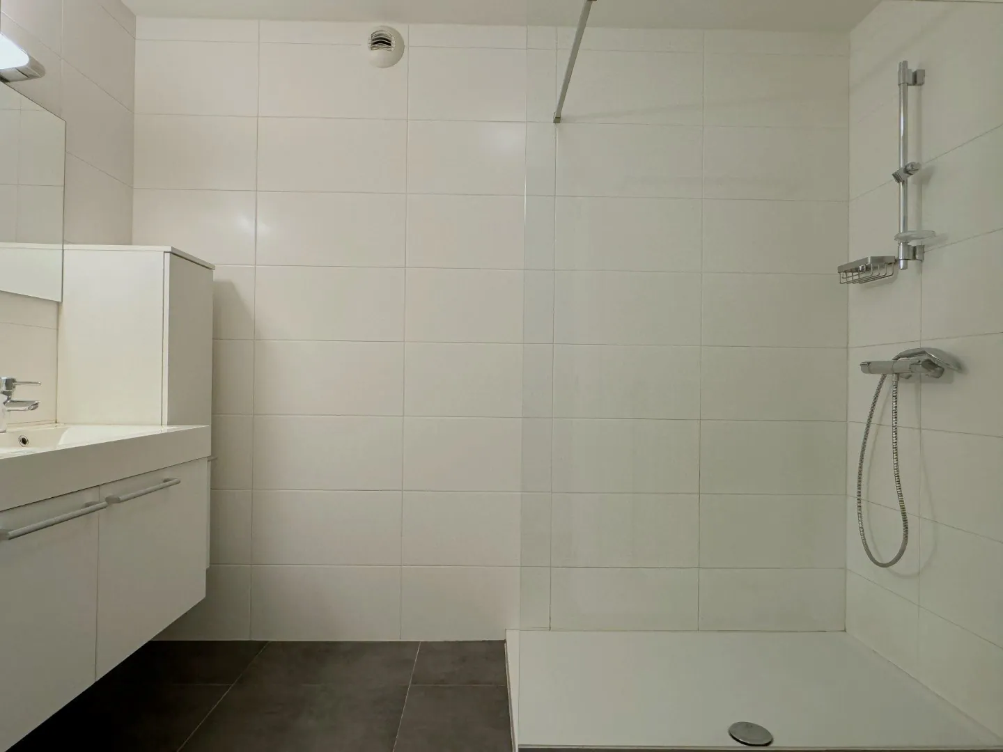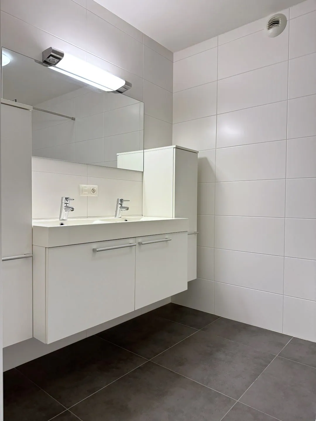 De badkamer is zoals een badkamer moet zijn: clean, onderhoudsvriendelijk en neutraal. Het toilet is ... apart. Verder zijn er 2 slaapkamers.