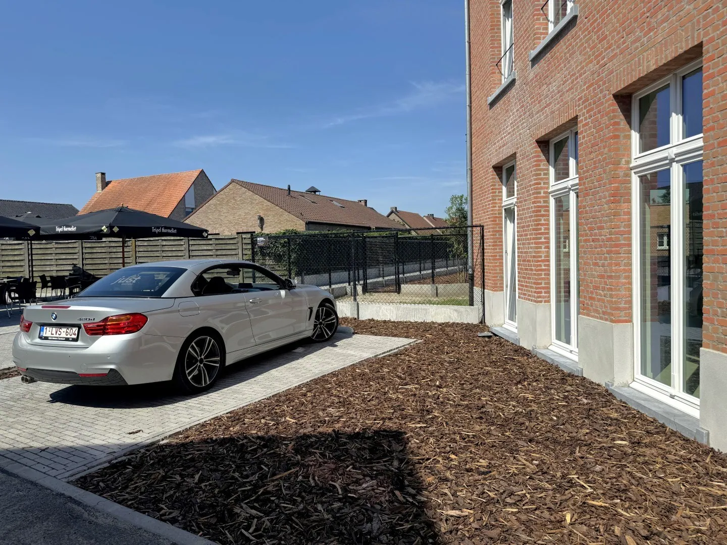De auto zet je droog in de garage achteraan op het terrein, maarrrr als bonus krijg je er nog een 2de parkeerplaats naast de deur bij. Ideaal als je 2 auto’s hebt, of handig voor bezoek. Liever de bus nemen? No problemo, die stopt letterlijk voor je deur.