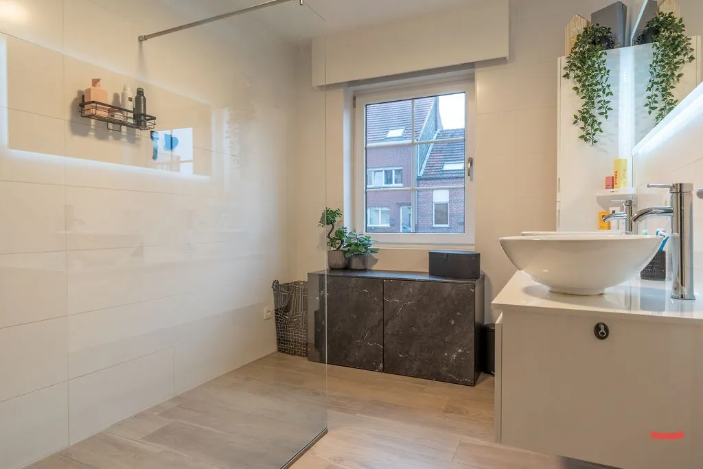 Er zijn 2 slaapkamers, met de badkamer ernaast. Geen donker hoekje, maar een verrassend ruime badkamer met een inloopdouche, een dubbele wastafel en voldoende bergruimte. En als bonus: een raam, voor éxtra licht en lucht. Top! Het toilet is apart.