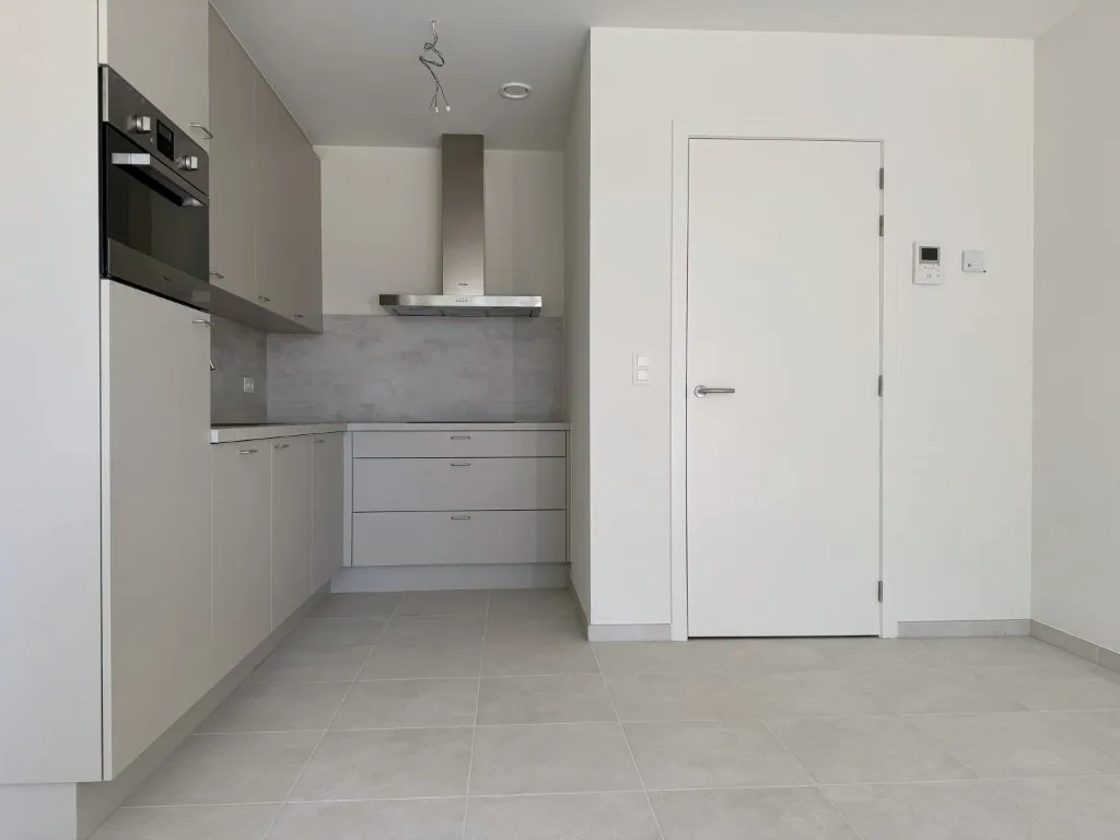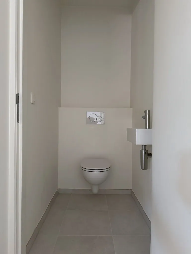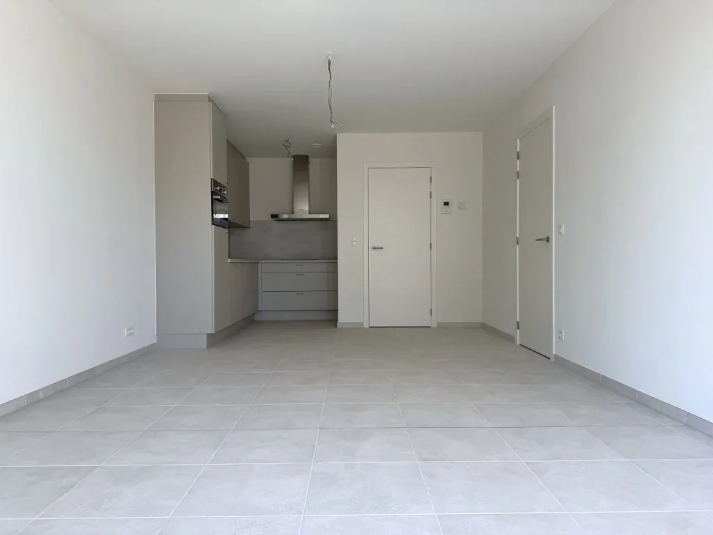 Er is een woonkamer met open keuken, voorzien met alle nodige snufjes. Om de hoek vind je nog een bergplaats met aansluitingen voor wassen en drogen, en een apart toilet. De grote slaapkamer geeft dan weer toegang naar de badkamer, met douche en badkamermeubel.