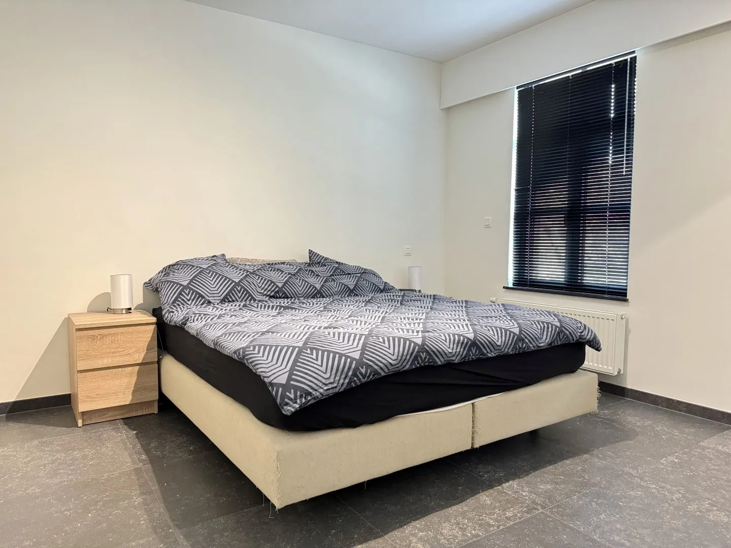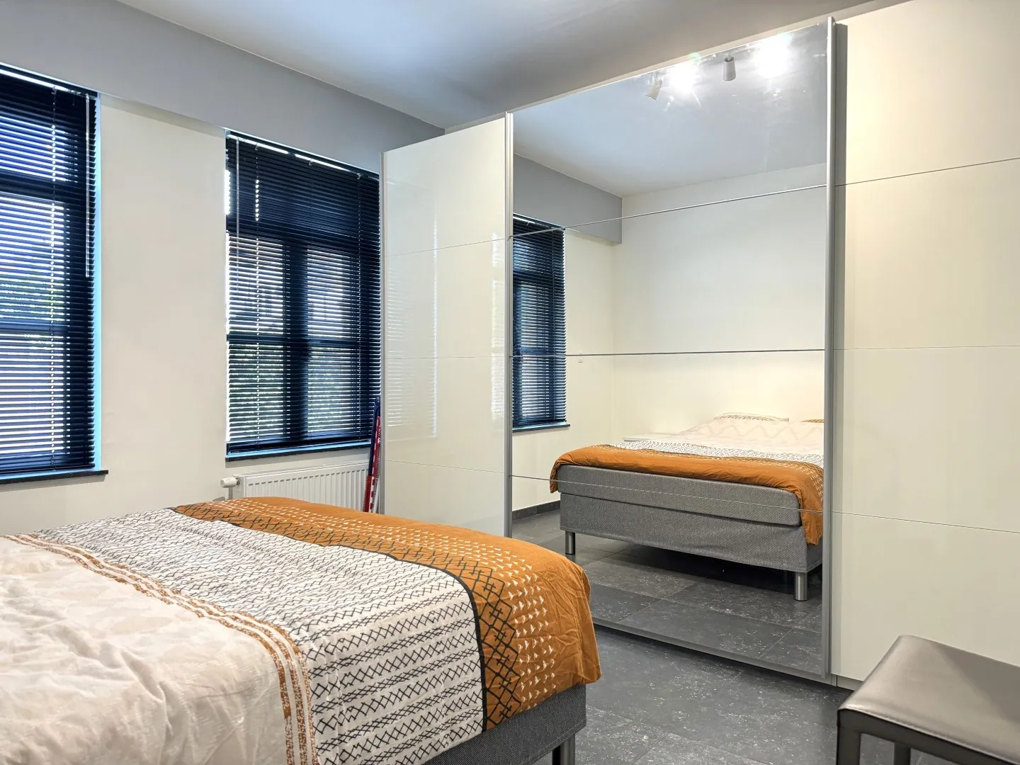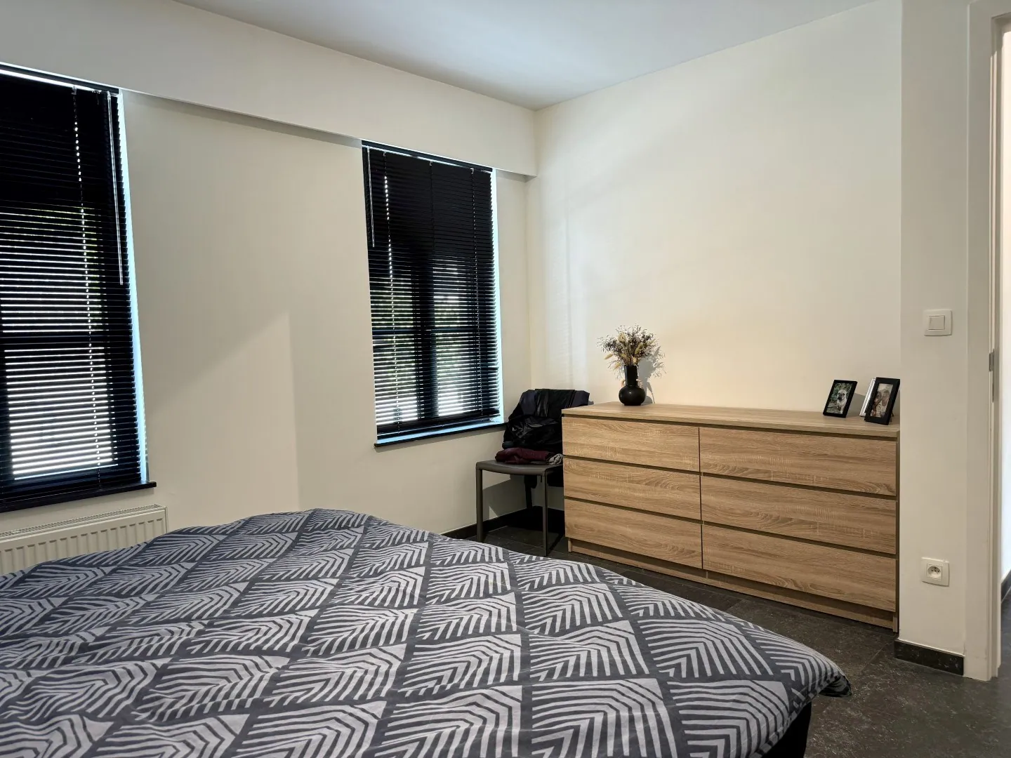 Slapen doen we aan de voorzijde, maar hé…da’s geen probleem op ... deze locatie, toch? Geen voorbijrazend verkeer of bussen, dus je slaapt als een roos. En de rolluiken zijn een fijne bonus. Er zijn 2 slaapkamers, telkens voldoende ruim voor een flink bed en een kast.