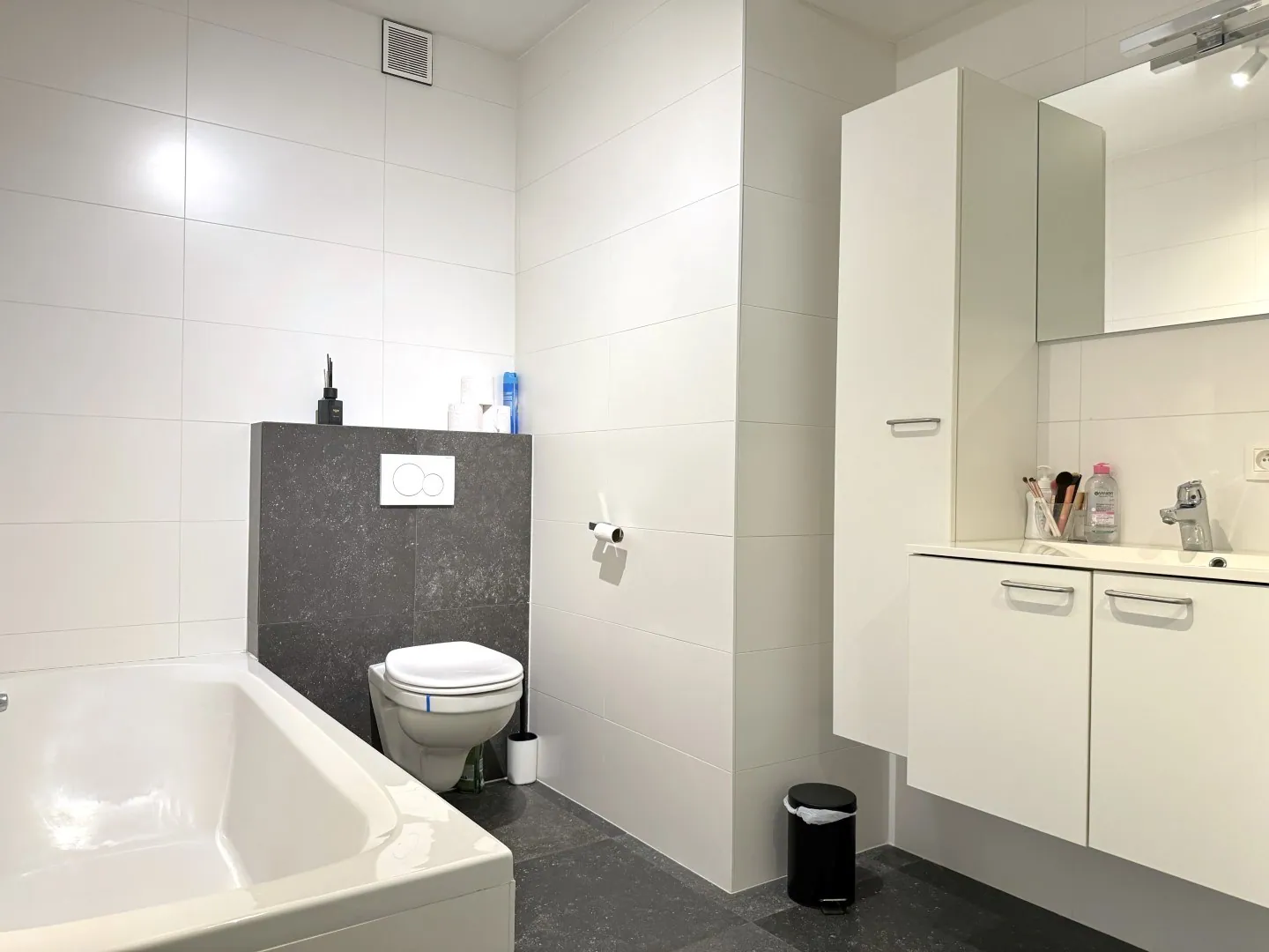 Verder is er een badkamer met bad én douche (jawel!), meubel en toilet. En niet te onderschatten: een grrrooote bergruimte, met aansluitingen voor wassen en drogen.
