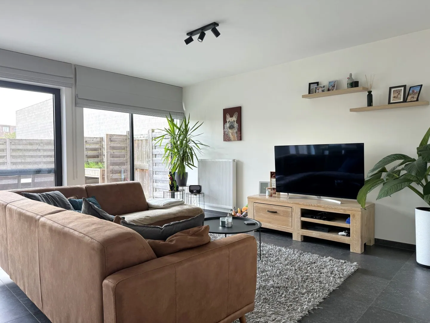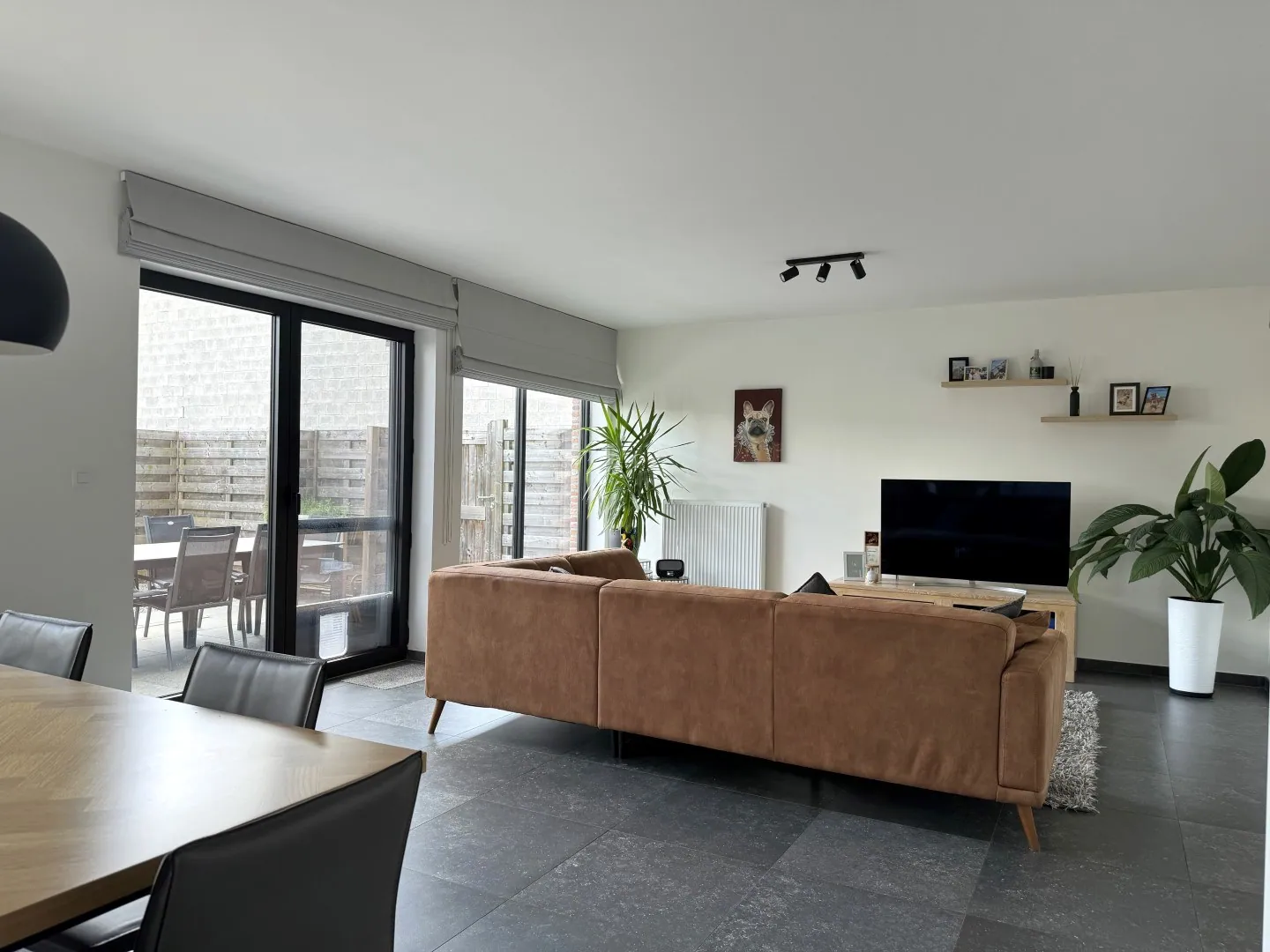 De woonkamer met open keuken zit aan de achterzijde. Check dat raam over de volledige achtergevel, dus lekker licht en een tof zicht op je tuin. In de keuken zijn trouwens alle snufjes aanwezig.