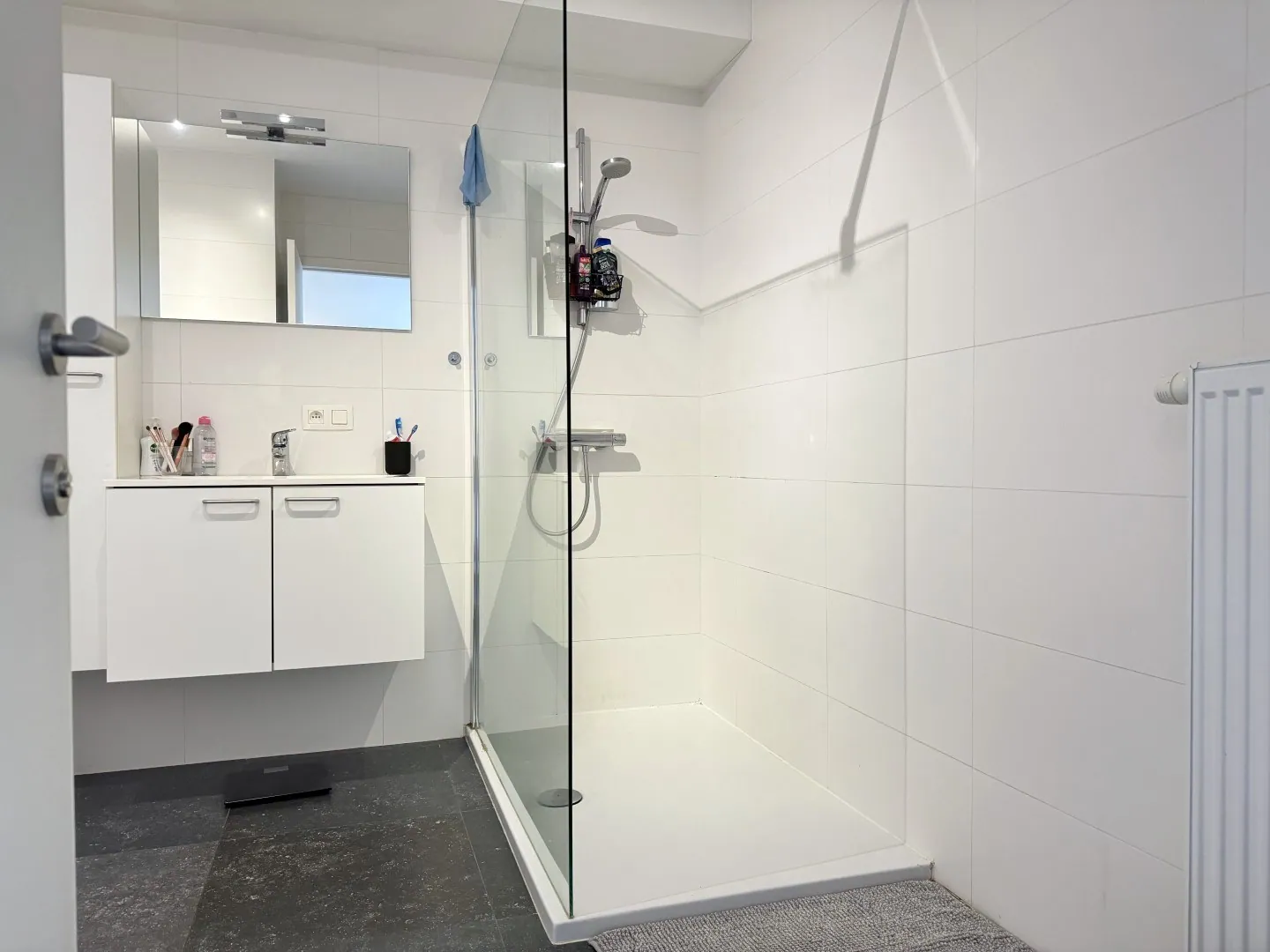Eindelijk nog eens een appartement met een ruime inkomhal. “Een goei inkomhalleke is goud waard voor uwe frak en sloffen” (citaat van Oma Just Wonen). Dus voila, voldoende ruimte voor een vestiaire.