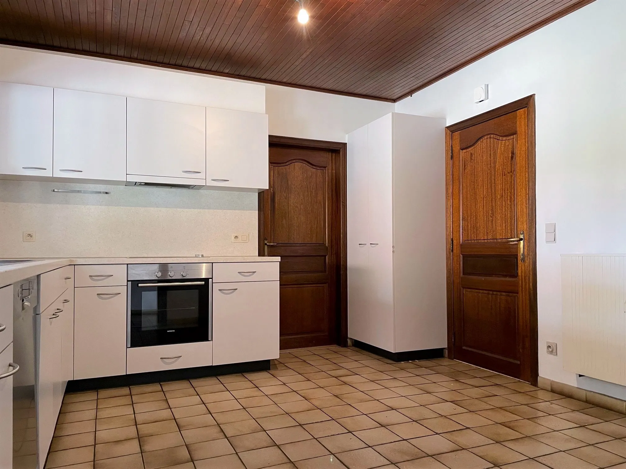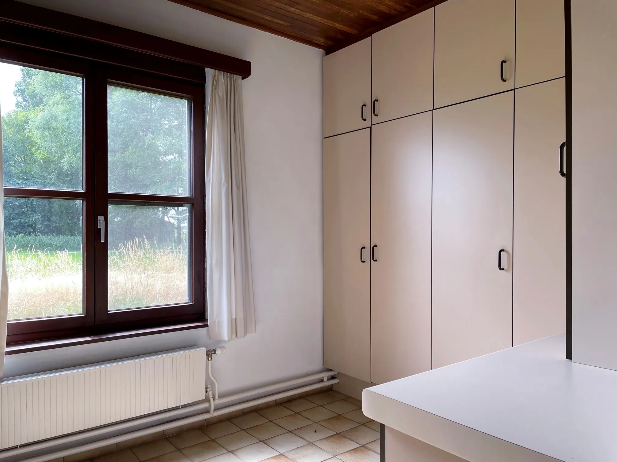 Check die woonkamer! Oké, ze is misschien niet afgewerkt met de laatste hippe materialen, maar dat geeft net karakter aan dit stulpje, toch? Er is centrale verwarming, maar (de aansluiting voor) een kachel zorgt voor extra sfeer. Aansluitend de grote keuken mét superhandige bergruimte. Heb je trouwens die riante veranda/serre gespot?