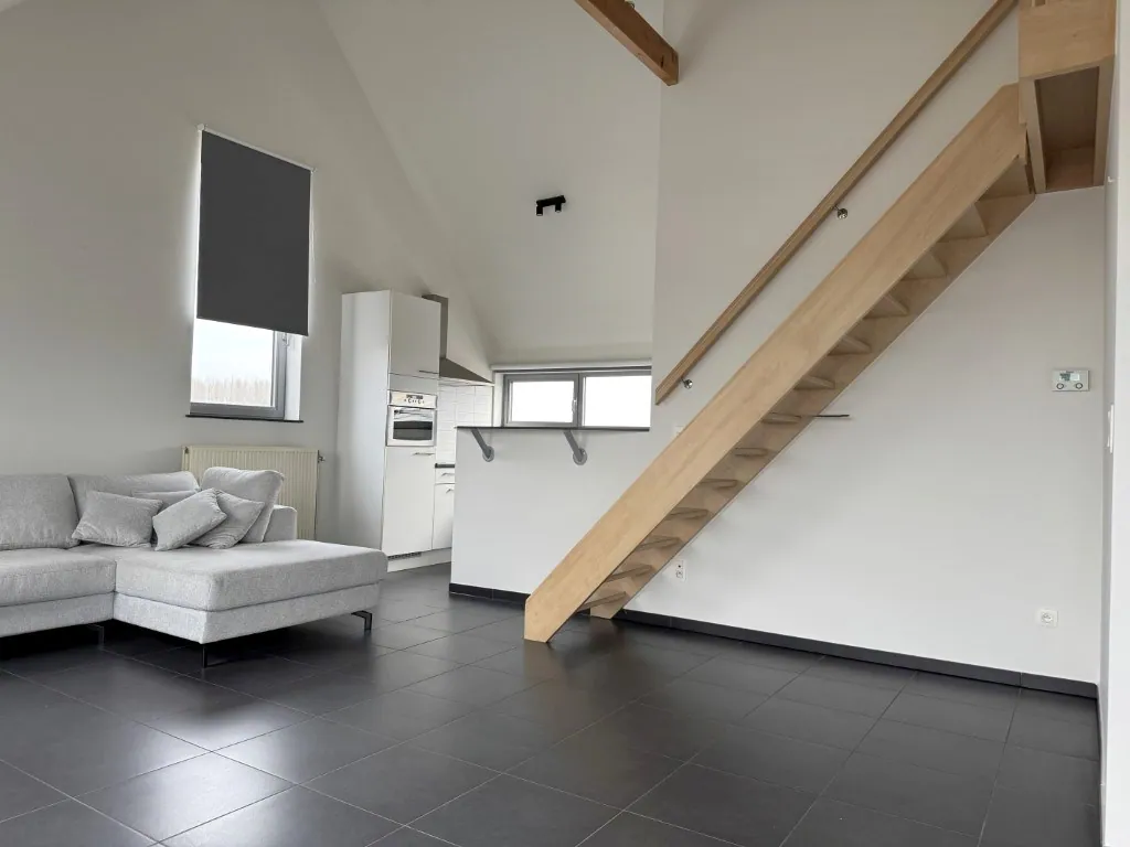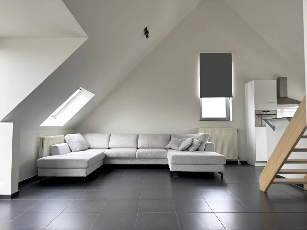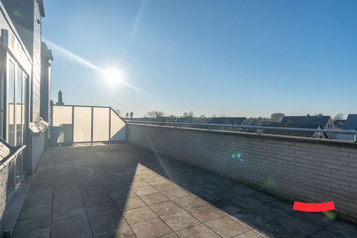 Loftgevoel in Ravels City! Check dat hoge plafond, de lichtinval en de gezelligheid van die schuine wanden! En dat enorme terras al gespot? Nope, deze makelaar neemt geen foto’s met een groothoeklens. Dit balkon is écht zo groot!