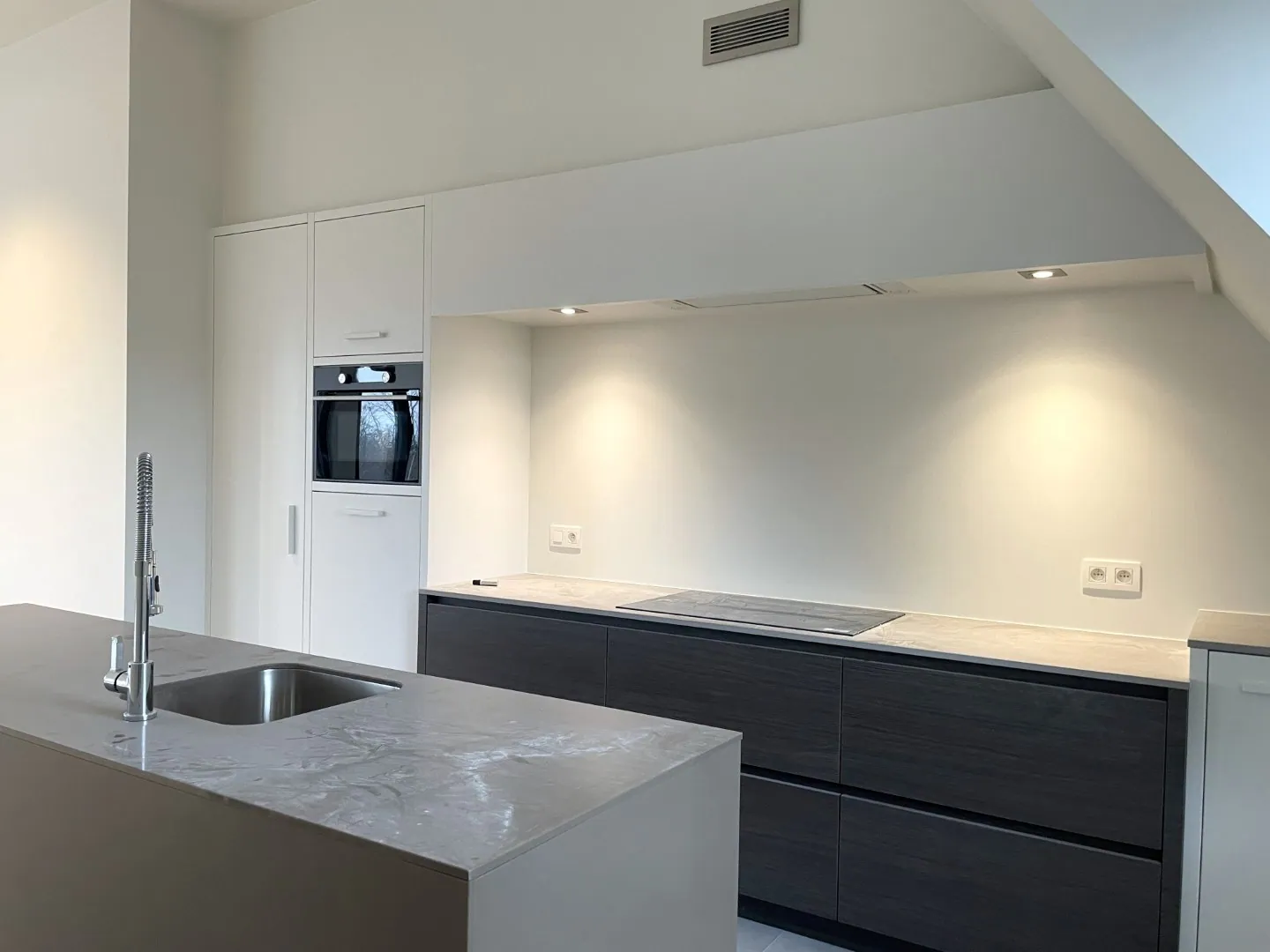 Luxueus wonen met zicht op de kerk! Klinkt chique, toch? De laatste details worden nog gefinetuned in deze penthouse, maar oh boy…wat een afwerking! Alle high-end snufjes zitten er in: vloerverwarming op basis van warmtepomp, vloerkoeling, zonnepanelen, automatisch rolluiken, domotica, hoogwaardig afgewerkte keuken, inbouwspots, lift tot aan de deur, etc. Verder werd ie volledig geschilderd, dus meubels zetten en klaar!