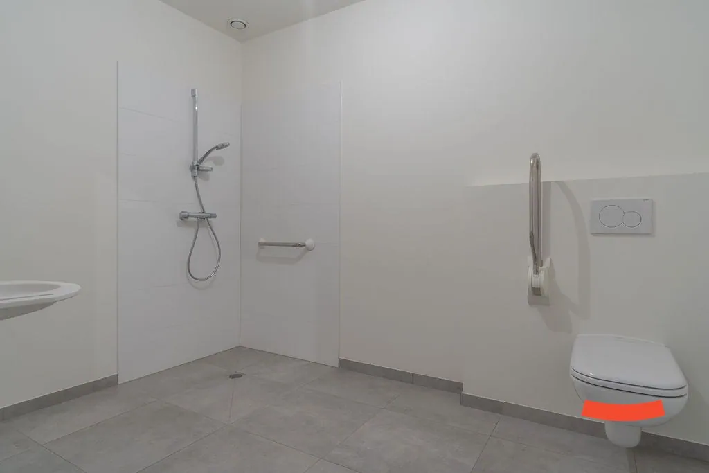 Het appartement werd trouwens volledig ingericht om het je zo gemakkelijk mogelijk te maken. Op het eerste zicht is dit sowieso een licht, ruim appartement met alle comfort, maar het gaat verder dan dat. De woning beschikt over de laatste, gebruiksvriendelijke snufjes, maar werd ook erg toegankelijk gemaakt. Grote kamers, enorme (rolstoelvriendelijke) badkamers, brede deuren, ruime lift, etc. Er is een 24/24 noodoproepsysteem, dus jij (en je familie) kunnen op beide oren slapen.