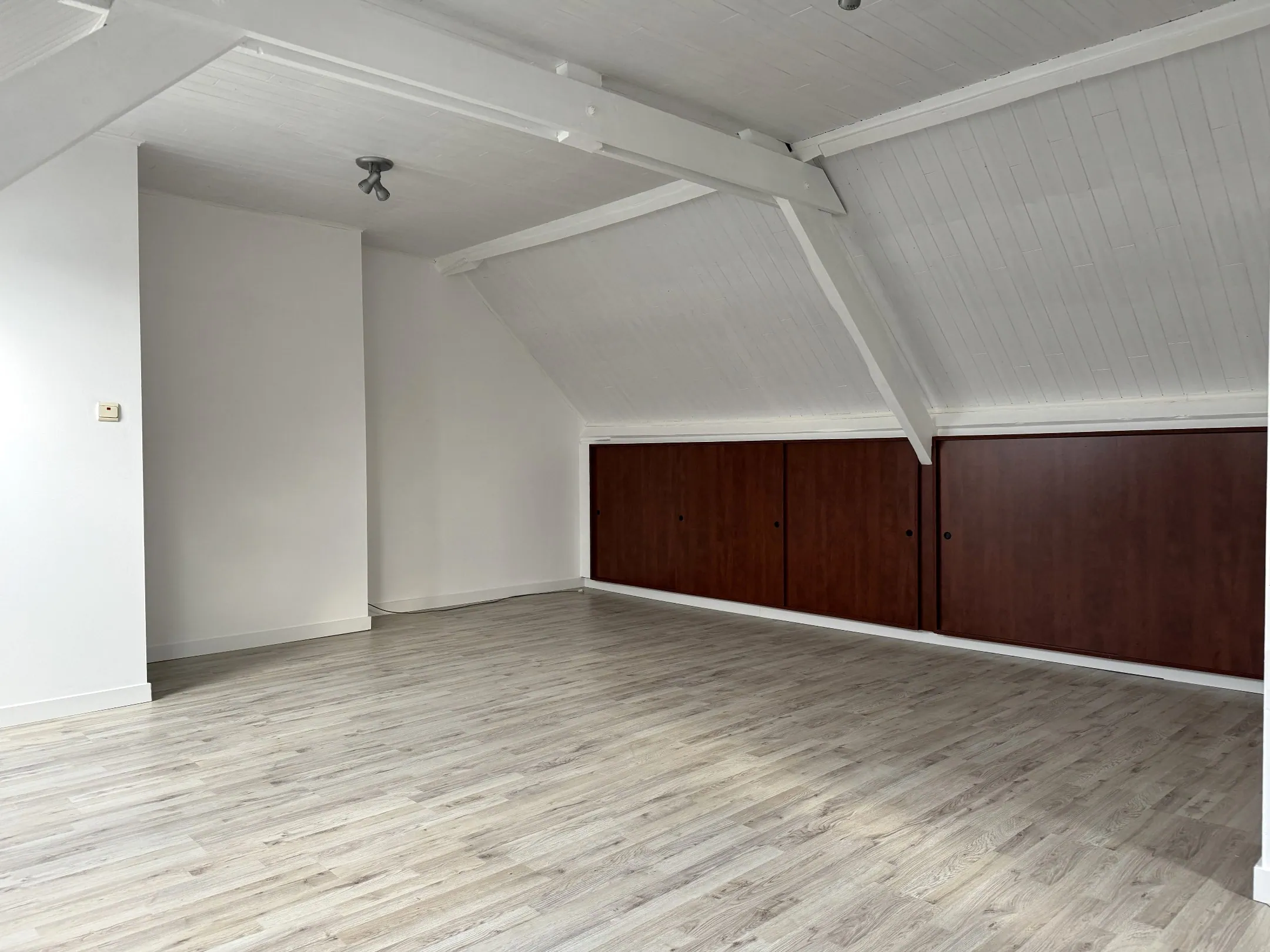 Boven zijn 3 slaapkamers, en een 4de kamer die toegang geeft naar de zolderverdieping. Ook deze werd voorzien van een vaste trap, dus kan prima dienst doen als slaapkamer. (Of hoor ik daar iemand “mancave” mompelen?). Hier vinden nog een apart toilet.