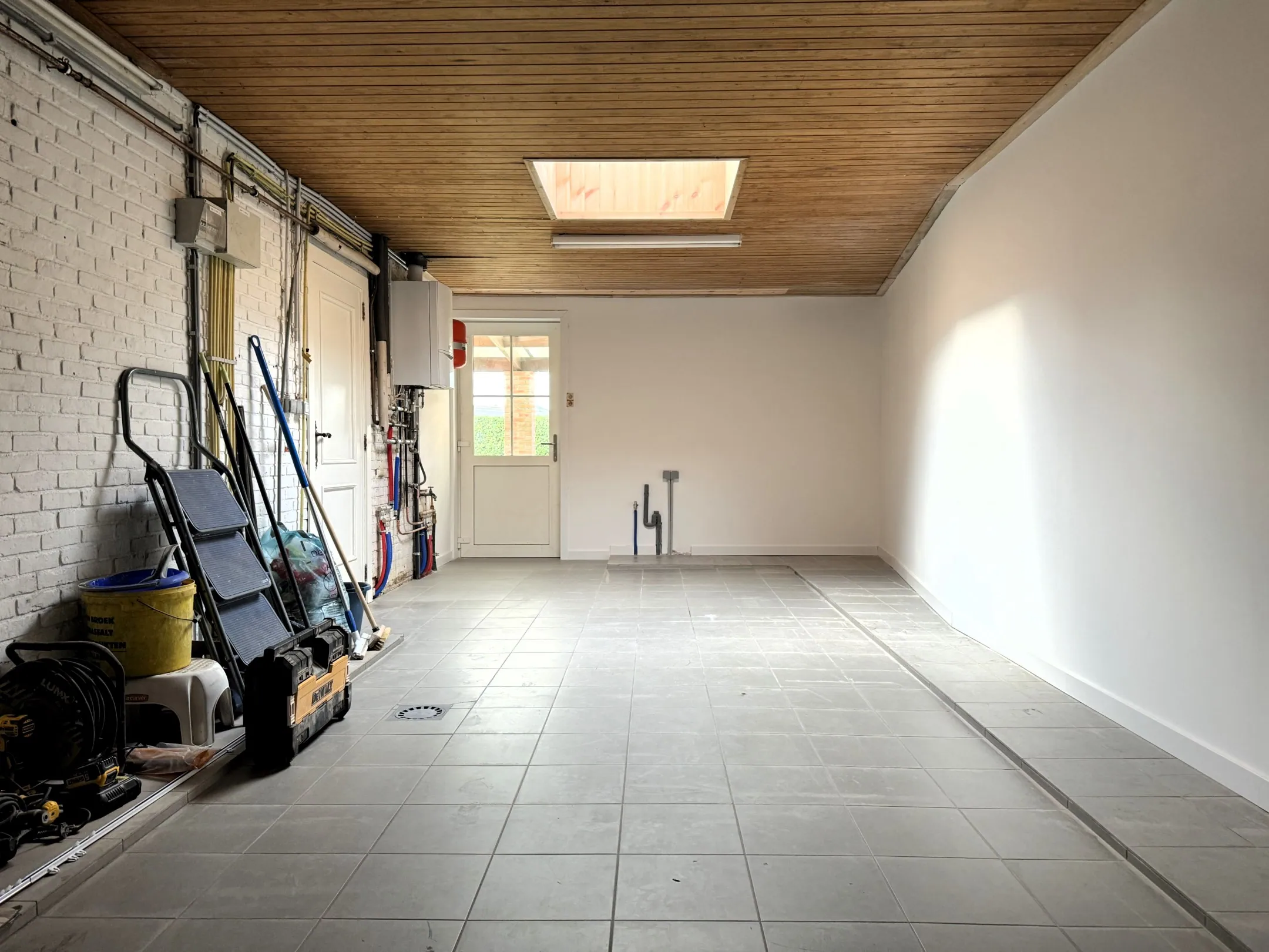 Er is tenslotte nog een garage (met aansluiting voor de wasmachine) en een kelder.