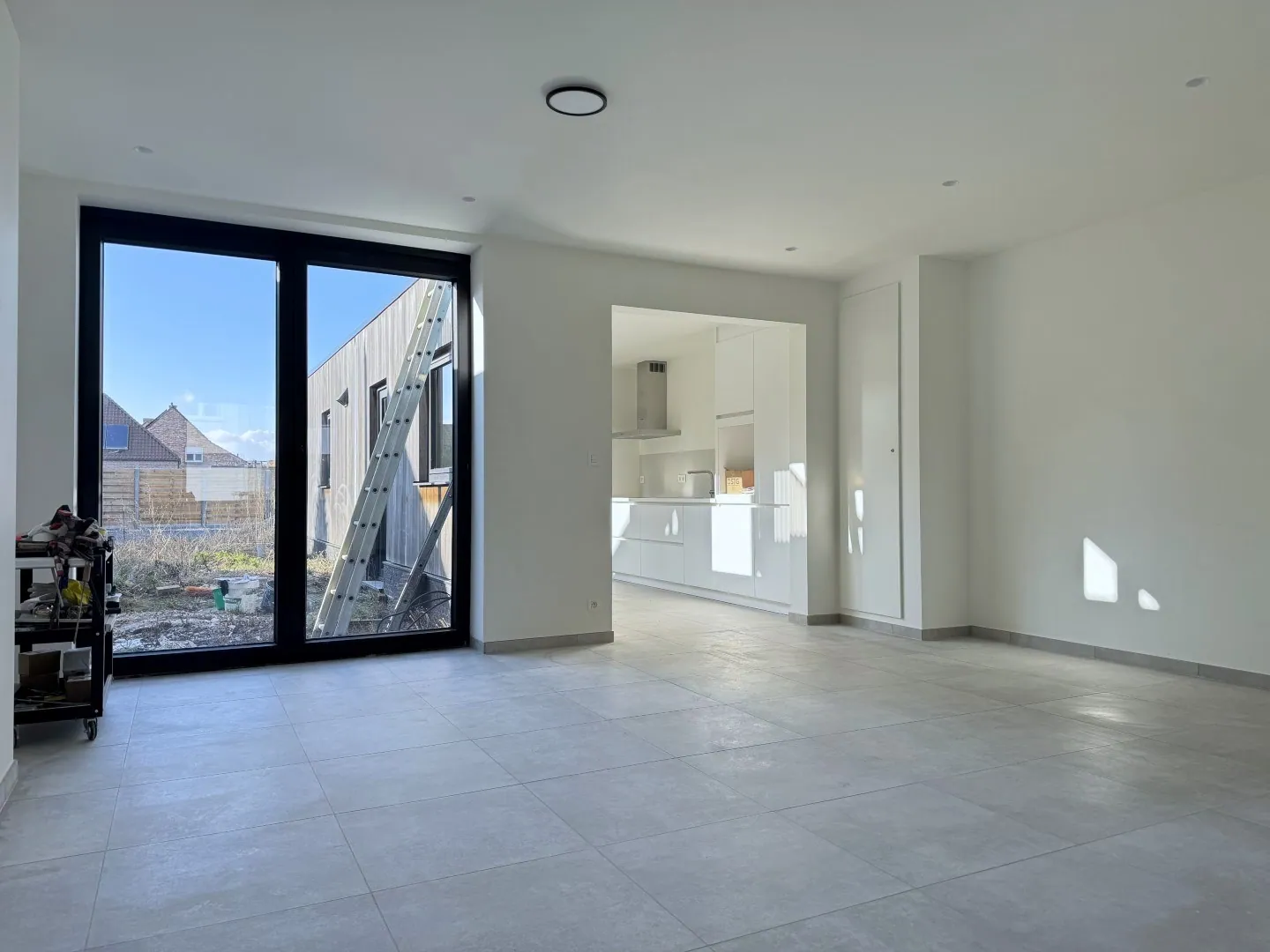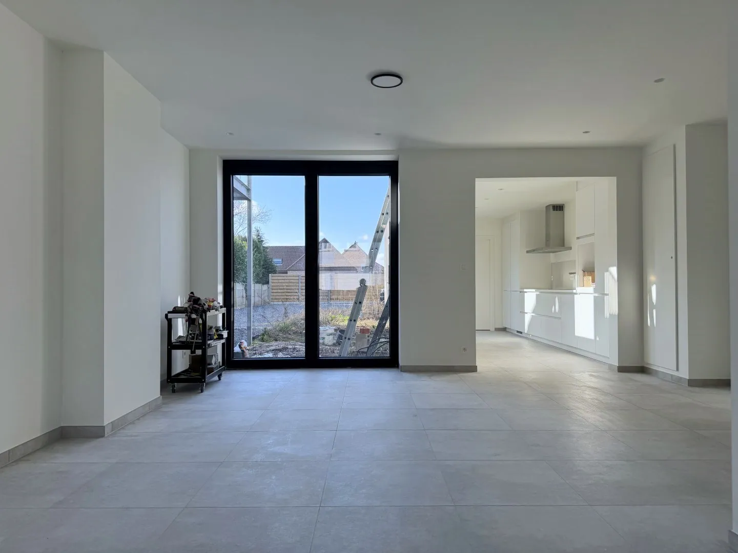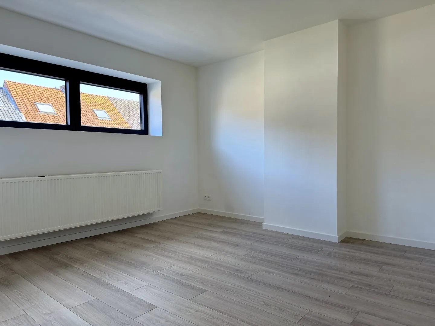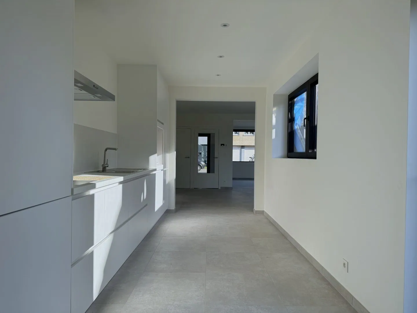 Letterlijk alle overbodige muren werden verwijderd. Resultaat? Licht en lucht! En dat zie je ook in de woonkamer. Een fijne, open sfeer met aansluitend de keuken. Lekker clean, en alle snufjes worden voor jou voorzien. Verder is er nog een ... wasplaats, met helemaal achteraan een eerste badkamer met wastafel, grote douche en een toilet.