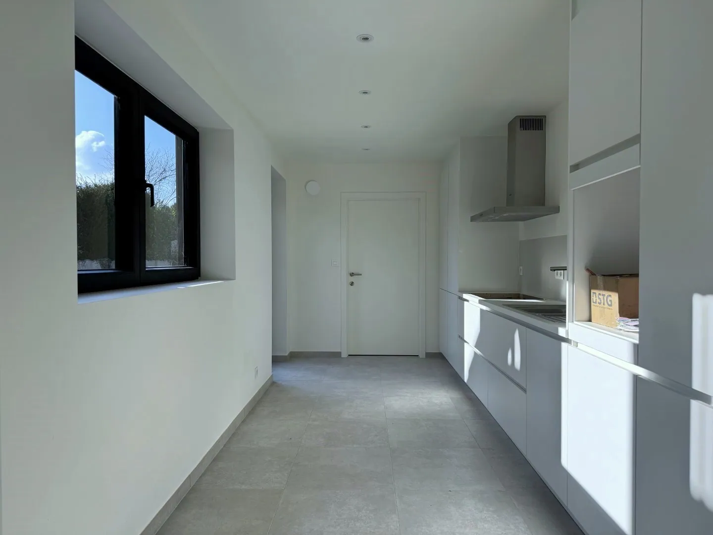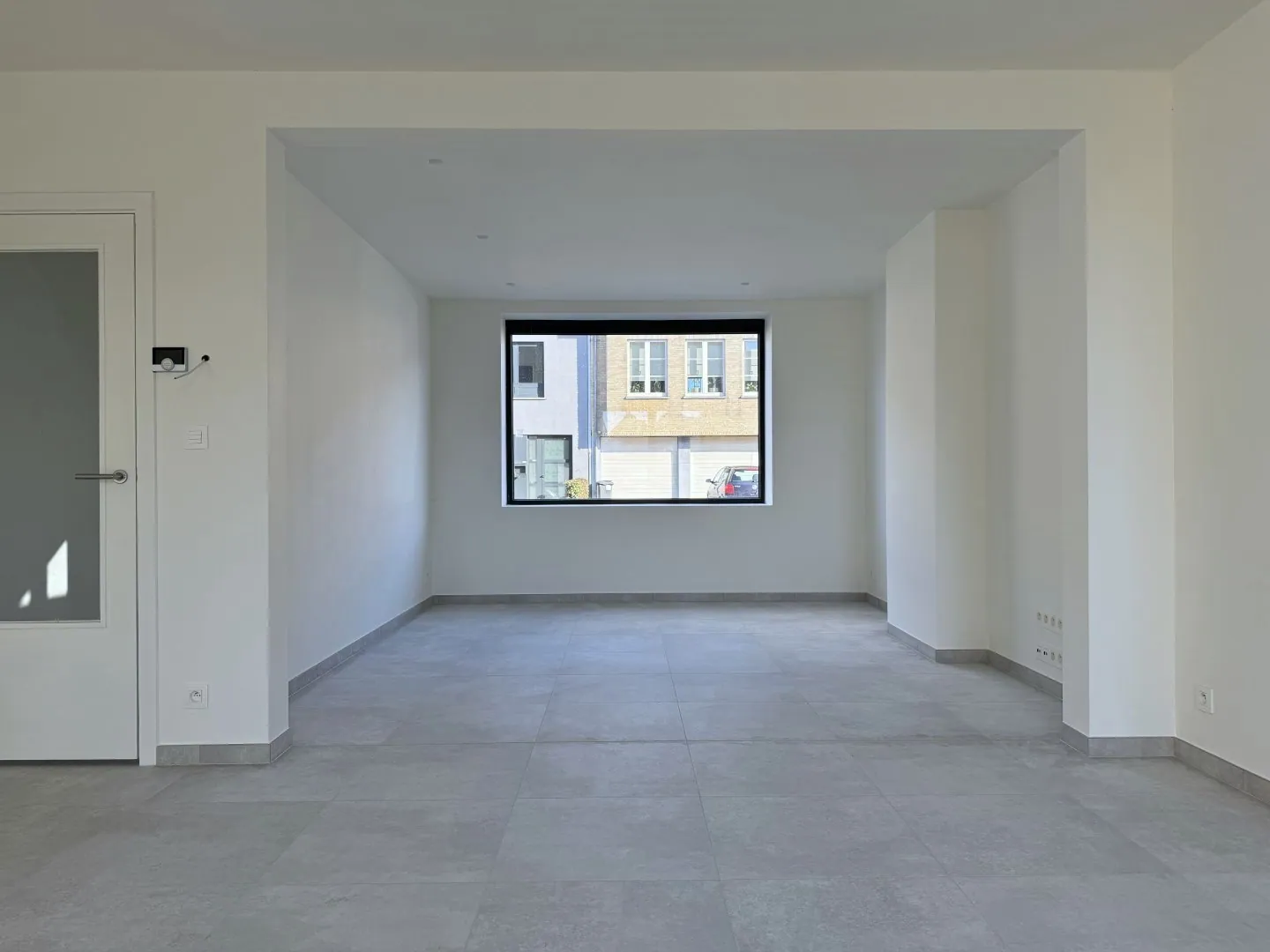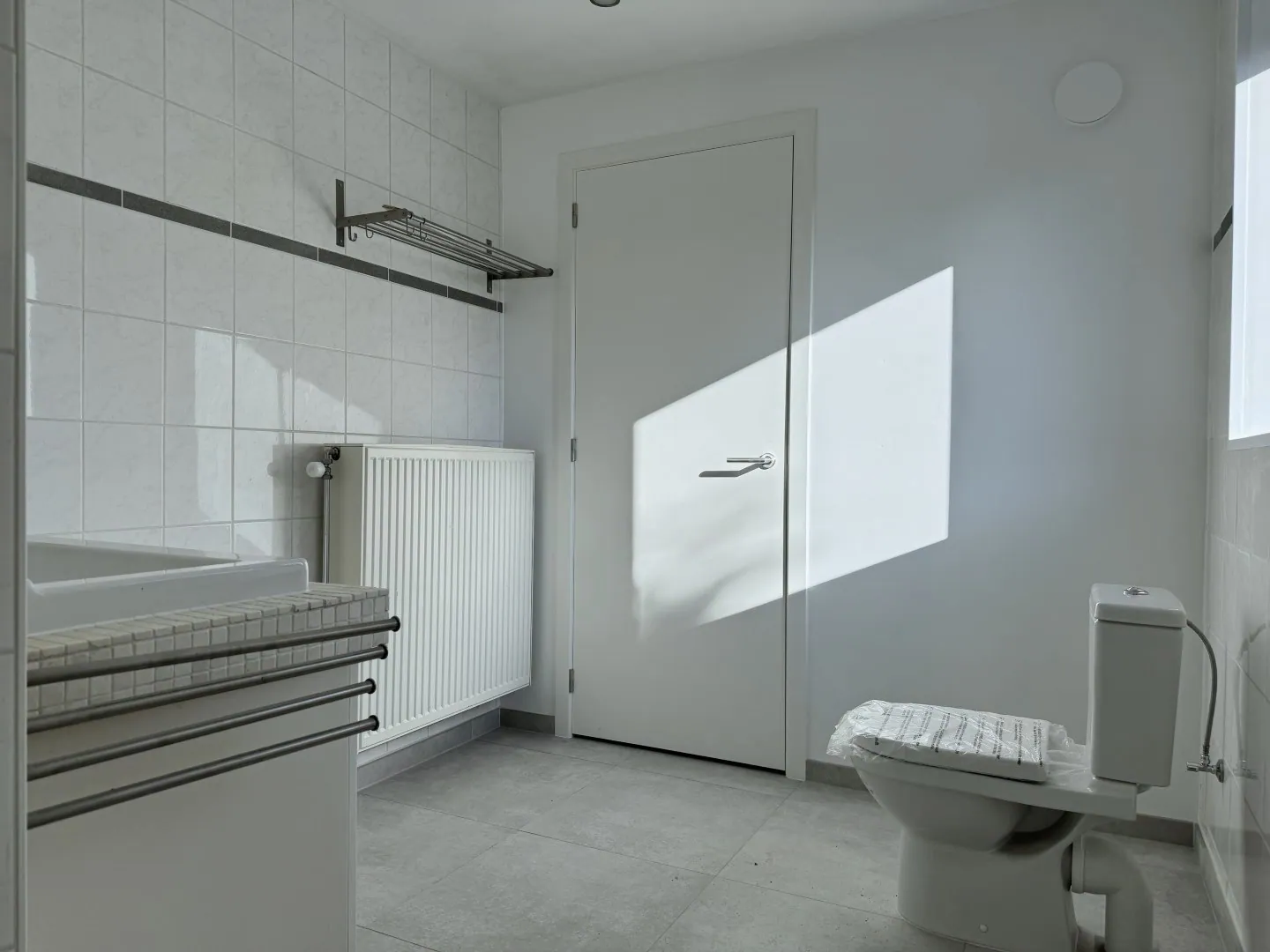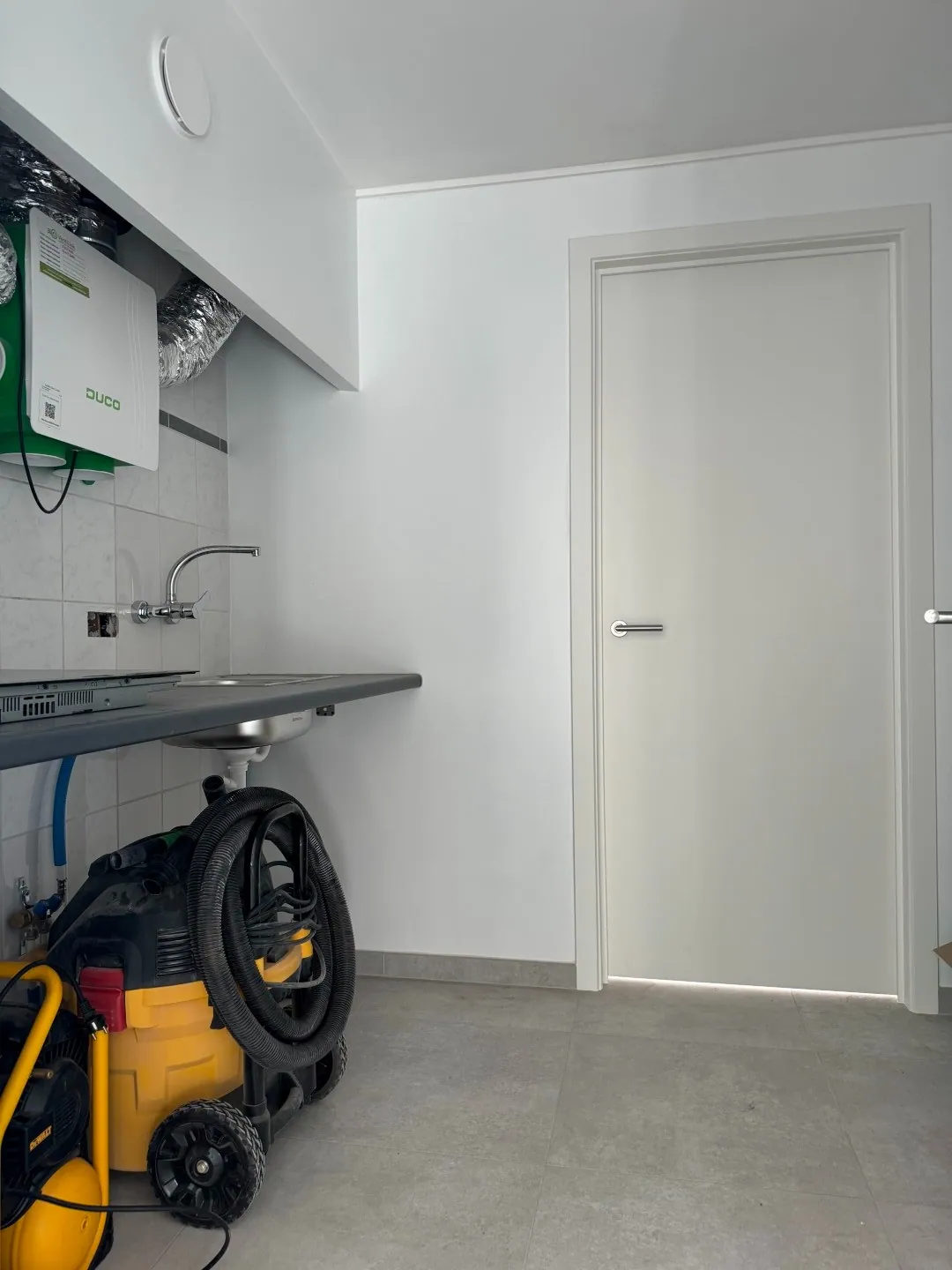 Letterlijk alle overbodige muren werden verwijderd. Resultaat? Licht en lucht! En dat zie je ook in de woonkamer. Een fijne, open sfeer met aansluitend de keuken. Lekker clean, en alle snufjes worden voor jou voorzien. Verder is er nog een ... wasplaats, met helemaal achteraan een eerste badkamer met wastafel, grote douche en een toilet.