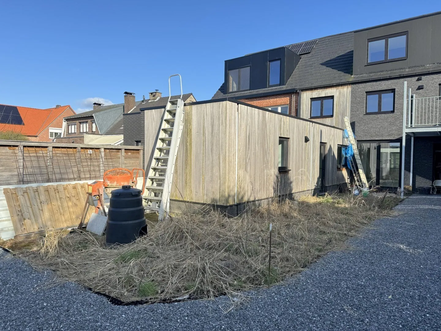 Achter het huis is de parking die je deelt met je buurman, en hier kan jij 2 auto’s kwijt. Verder heb je nog een knus privé tuintje. Momenteel werd ‘ie nog niet aangelegd, maar daar kijk jij wel doorheen, toch? Hij wordt onderhoudsvriendelijk afgewerkt, met een hek errond. Lees meer Verberg