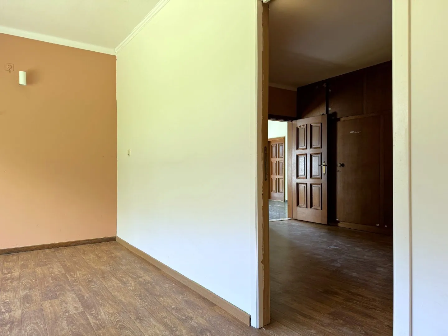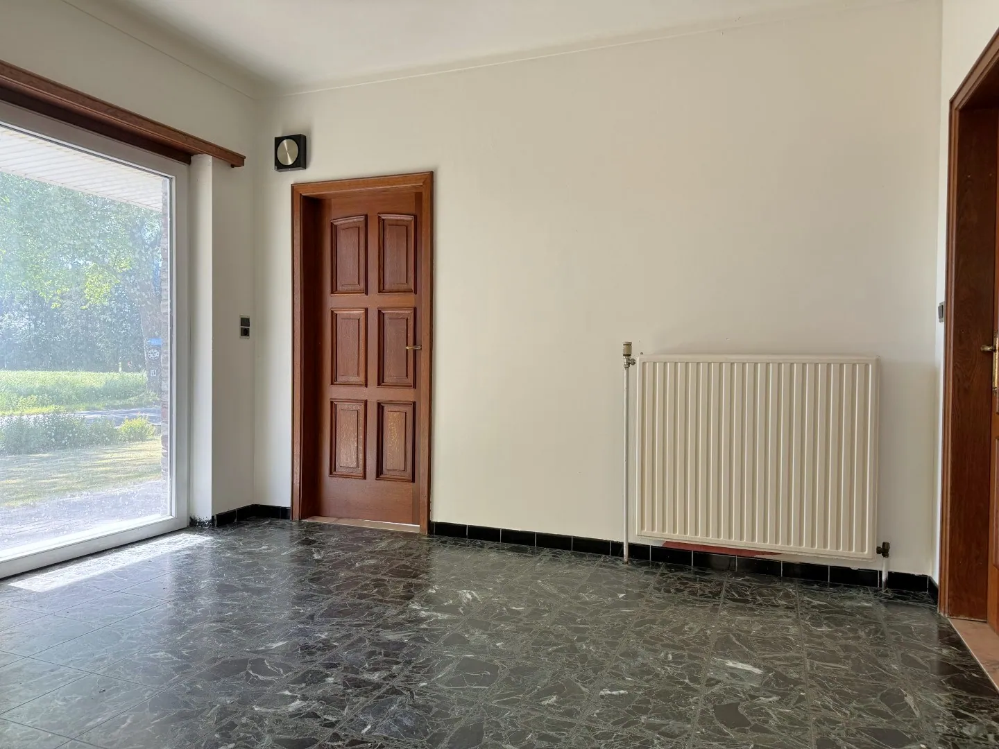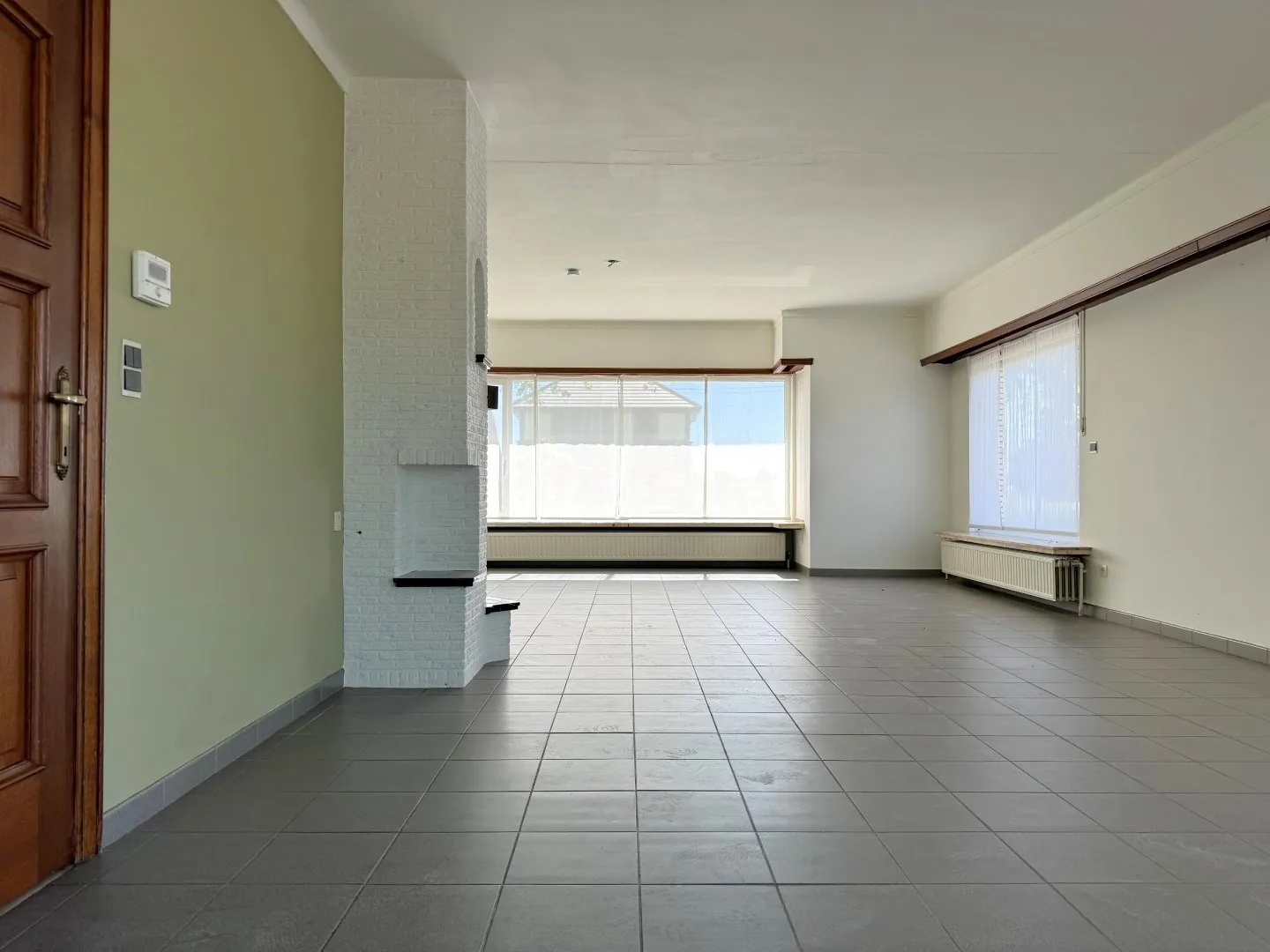 Van een royale inkomhal gesproken! Niet enkel een fijne ontvangst voor gasten, maar ook een perfecte uitvalsbasis. Hier vind je namelijk een toegang naar de woonkamer, keuken en de 2 slaapkamers.