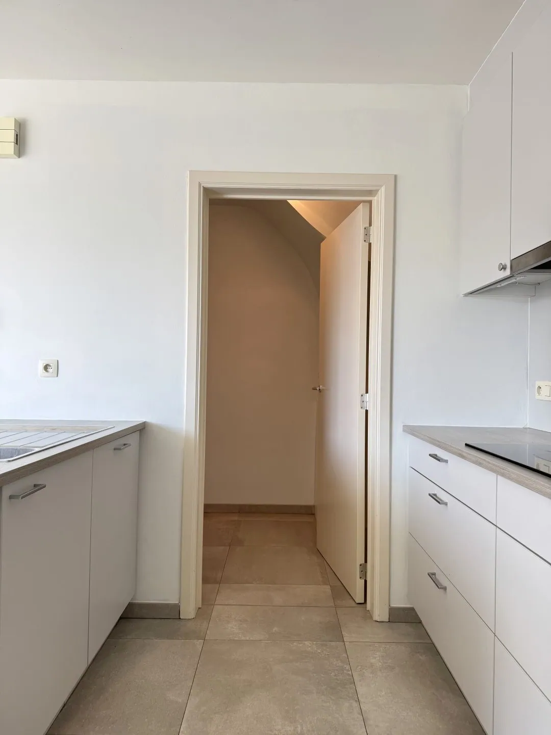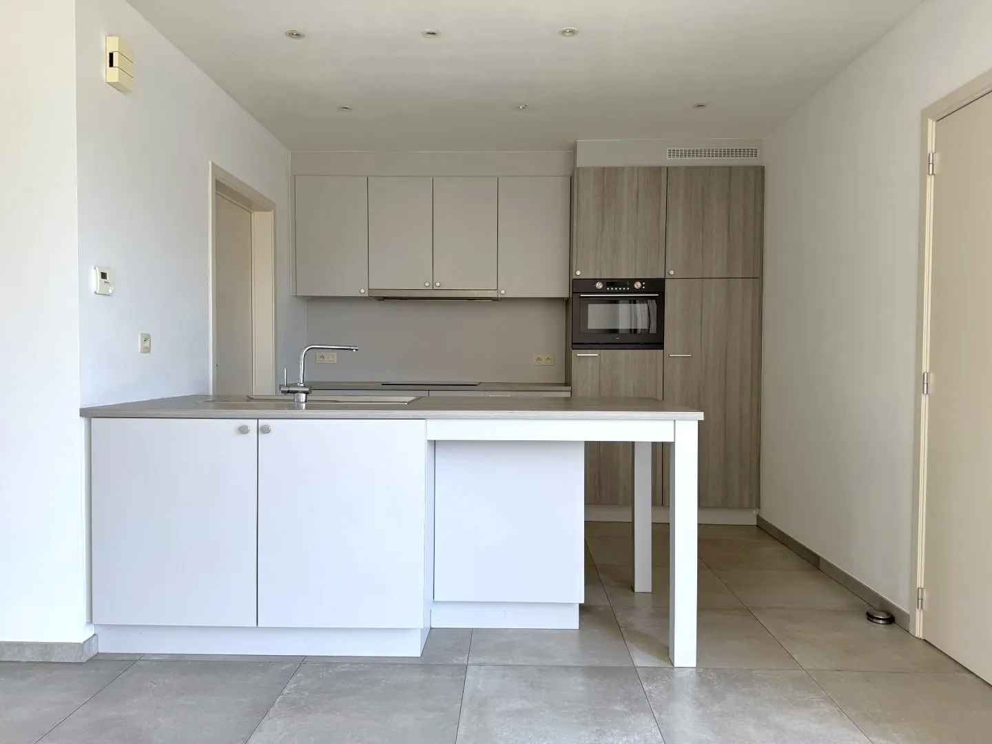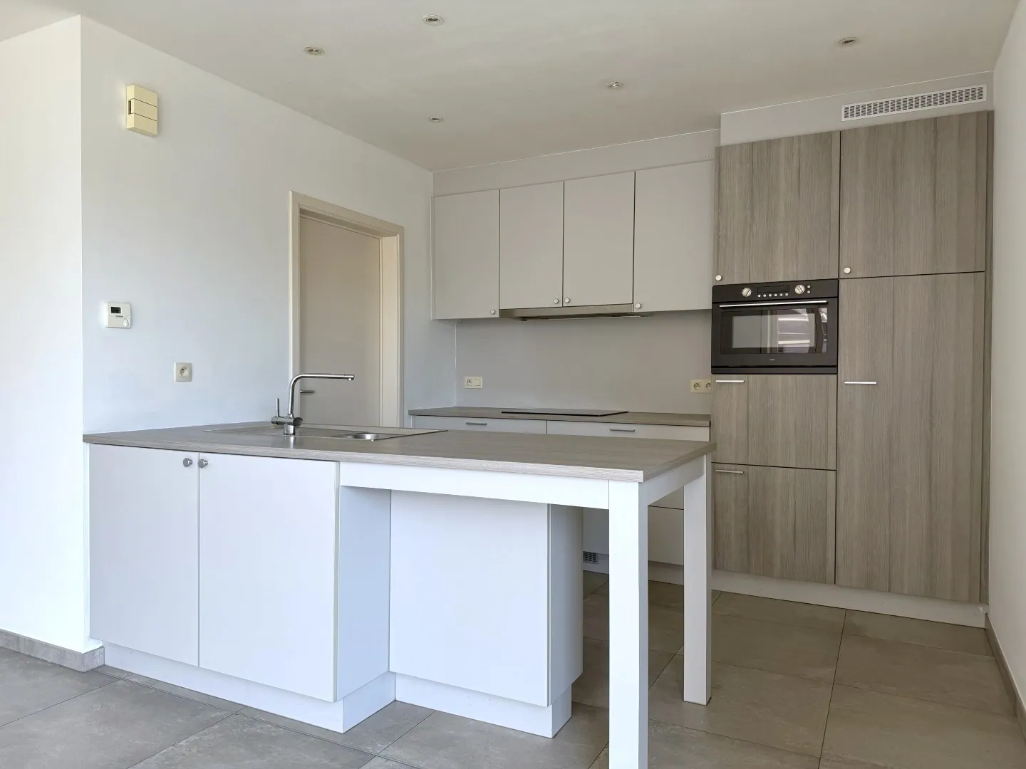 Via de inkomhal – met gastentoilet – stappen we in de woonkamer. Die is heerlijk rechttoe rechtaan, met aansluitend de open keuken. Alle snufjes zijn aanwezig, en om de hoek zit nog een handige voorraadruimte.