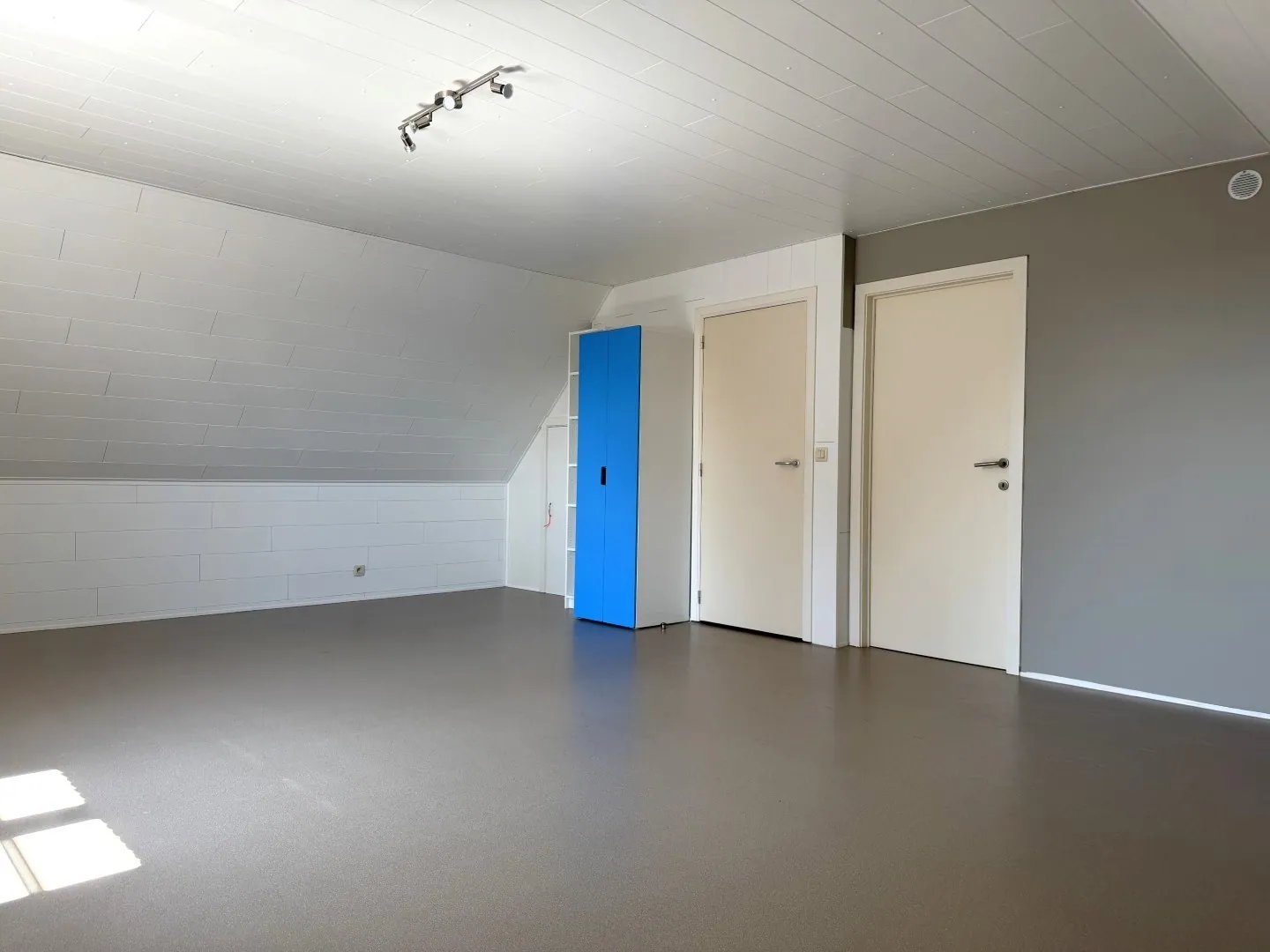 Nog een trapje hoger vinden we de zolder. Ook deze ... werd volledig afgewerkt, dus kan ook prima dienst doen als erg grote slaapkamer.