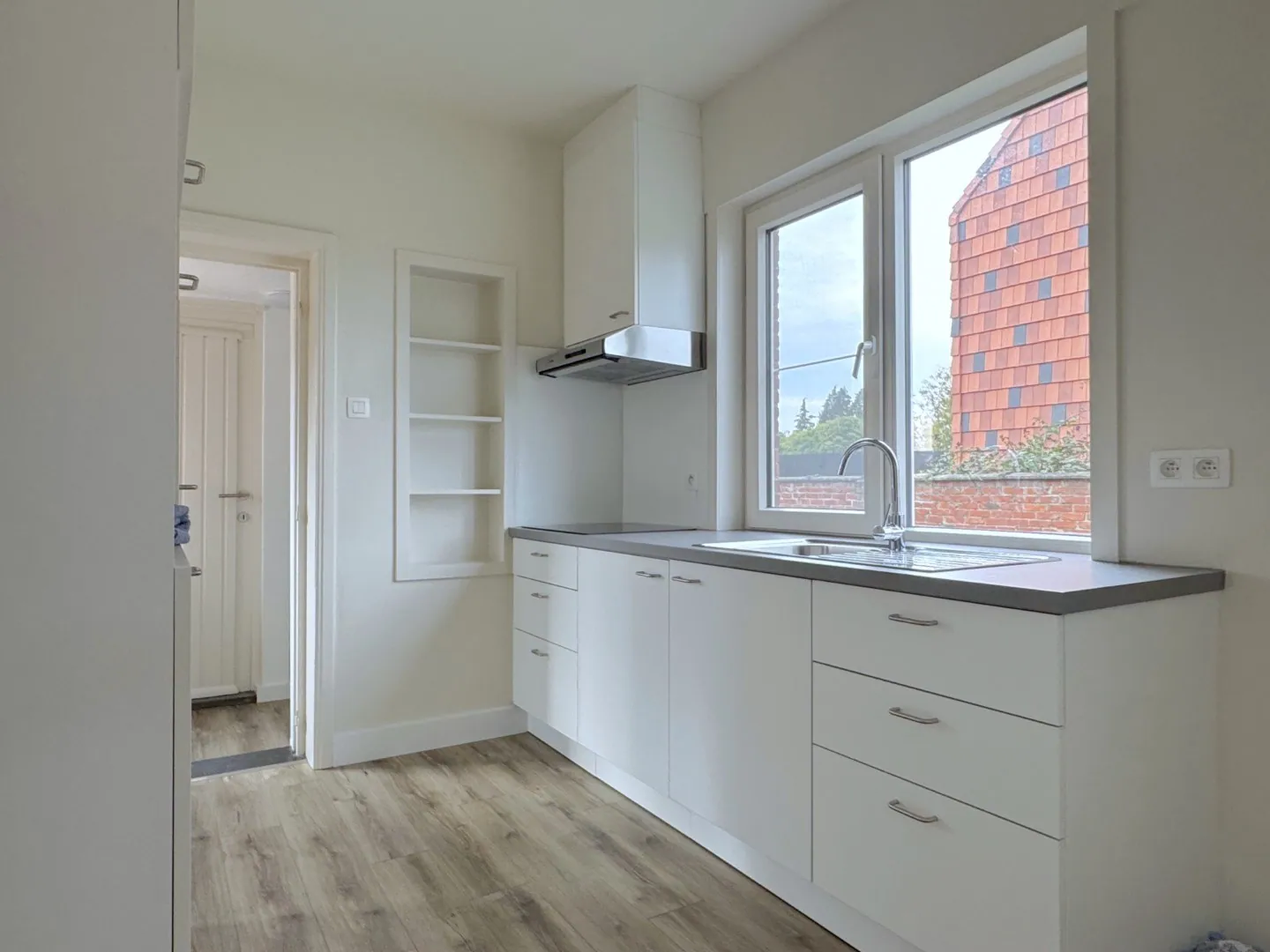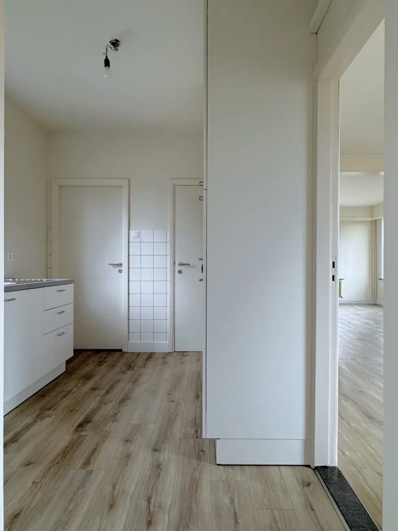 Gezellig binnenwandelen via de charmante inkomhal, die toegang geeft naar de woonkamer en de keuken. Wat je meteen opvalt? Licht! Jep, heerlijk veel lichtinval dankzij de grote ramen, én dat wordt nog eens keer extra in de verf gezet door de witte muren. ... Letterlijk, want de eigenaars hebben alles voor jou al geschilderd. Je kan er dus zo in.
