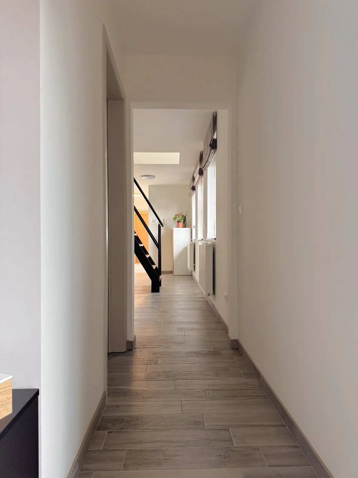 De gang leidt naar de open keuken — praktisch ingericht en klaar voor je innerlijke keukenprins(es) 👩🍳. De keuken loopt naadloos over in de gezellige woonkamer, de ideale plek om te relaxen of vrienden te ontvangen.