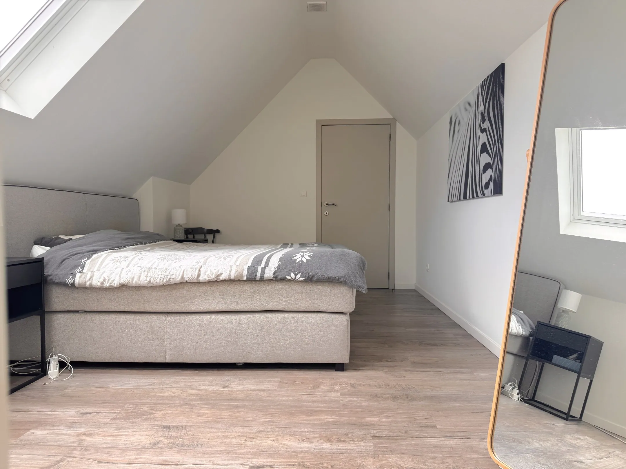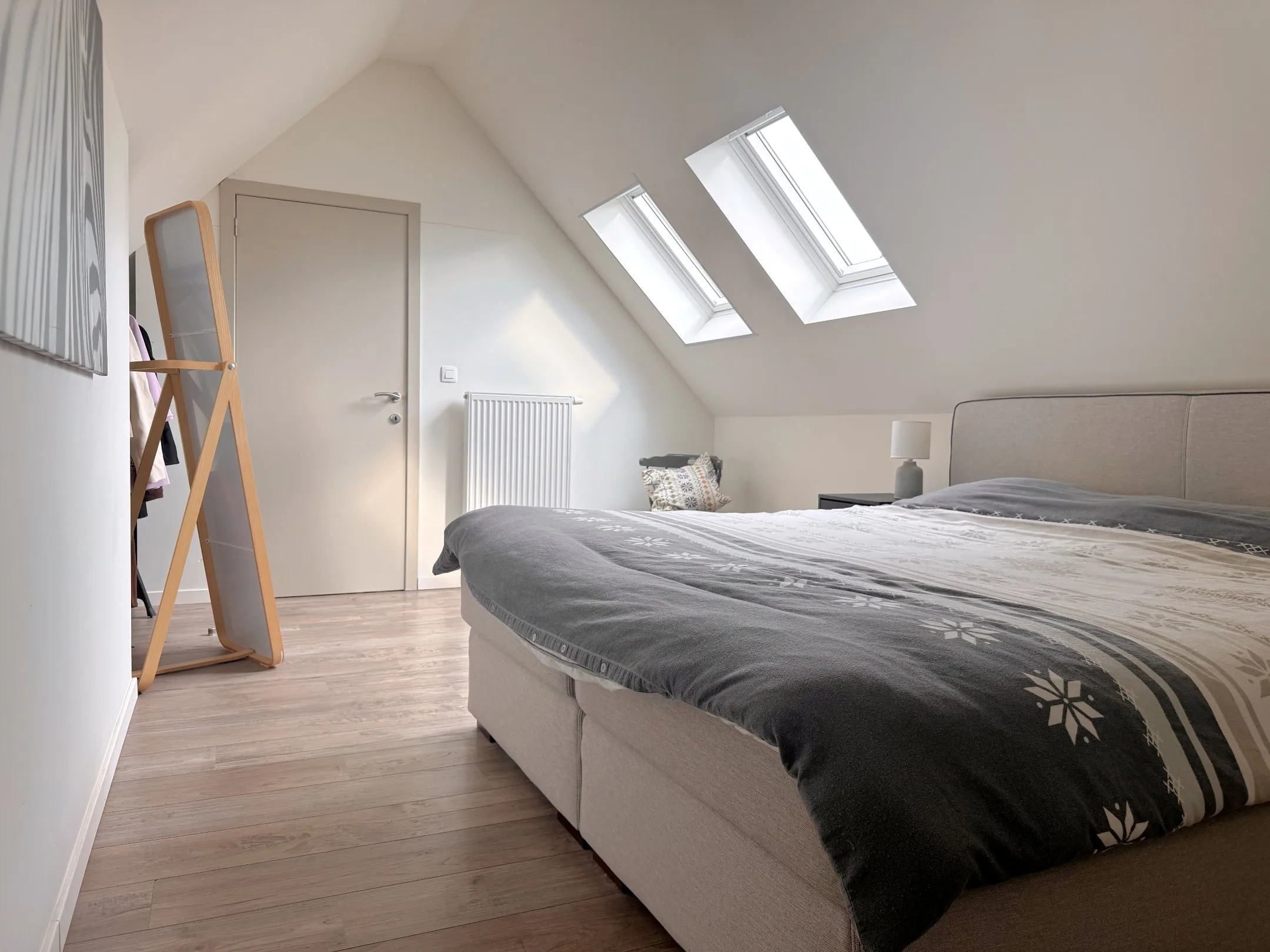 Via de trap komen we op de tweede verdieping, waar je 2 slaapkamers terugvindt én extra opbergruimtes (altijd handig!)