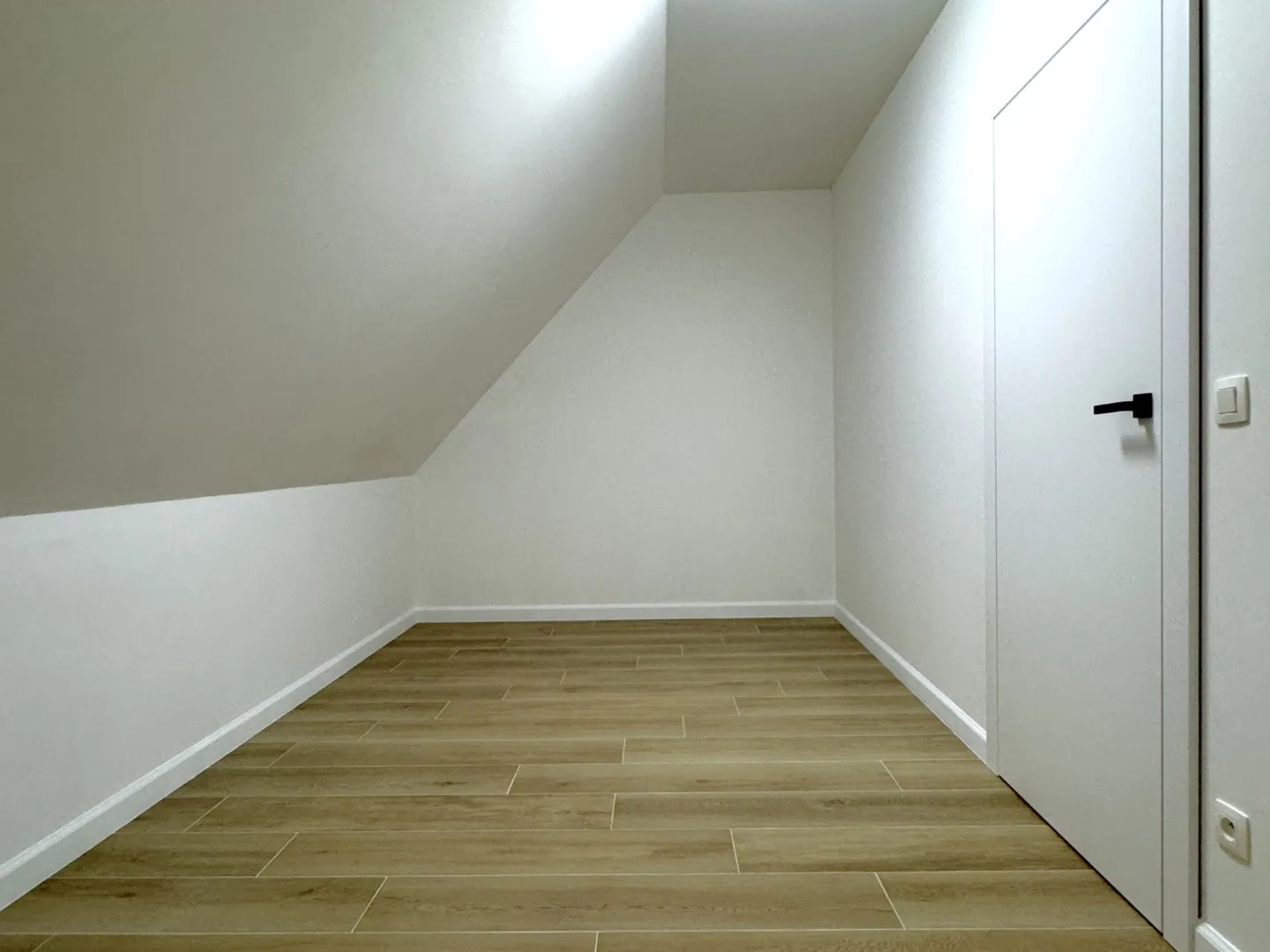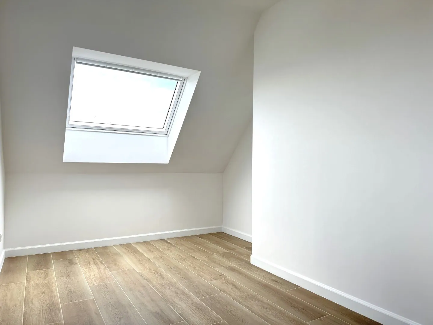 Zelfs de zolderruimte werd volledig afgewerkt. Hier vinden we slaapkamer 4, en nog een extra bergruimte.