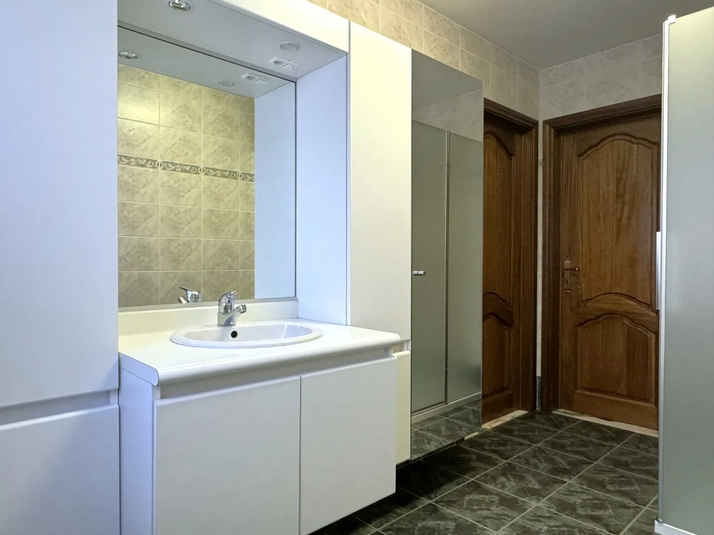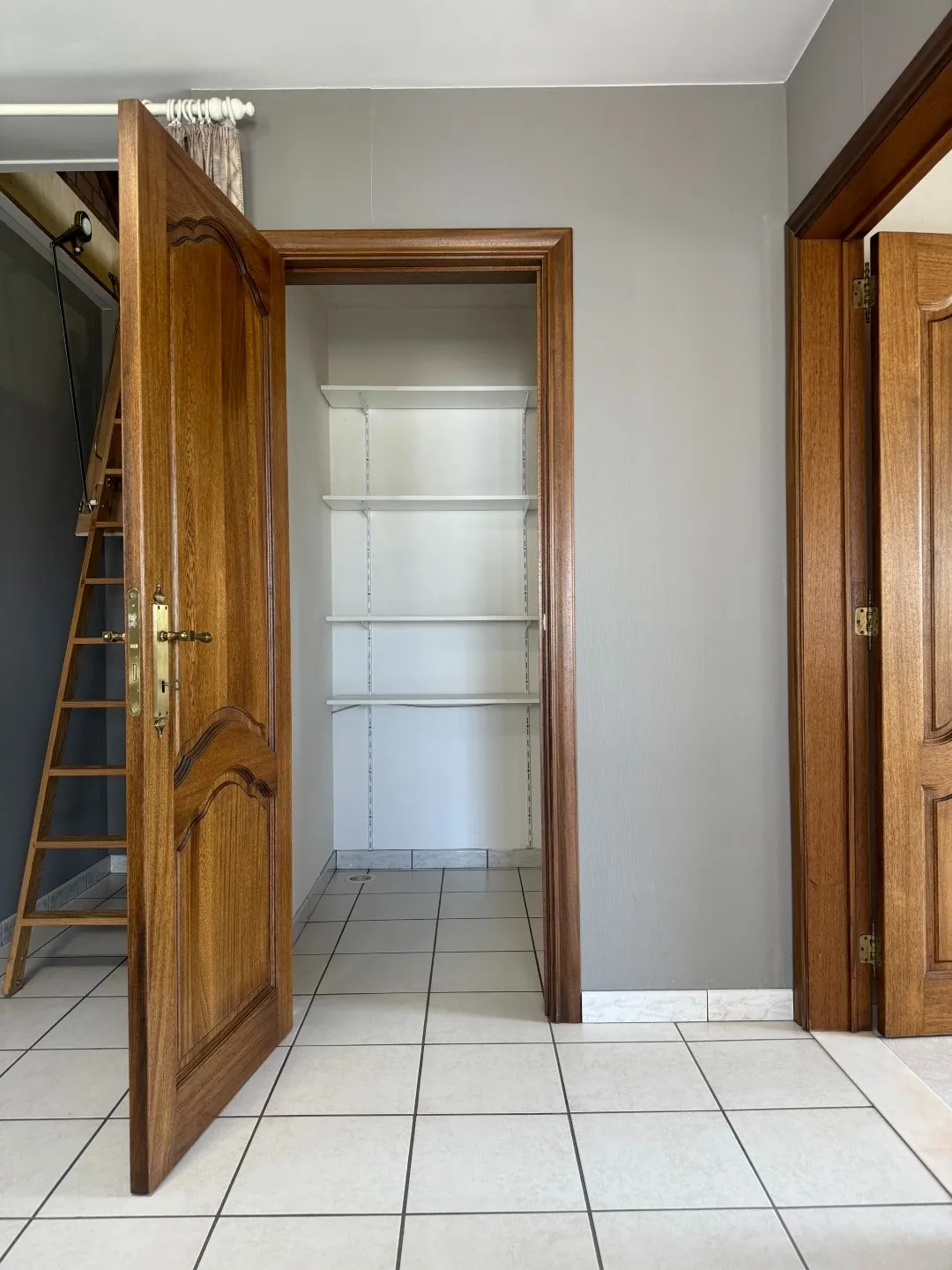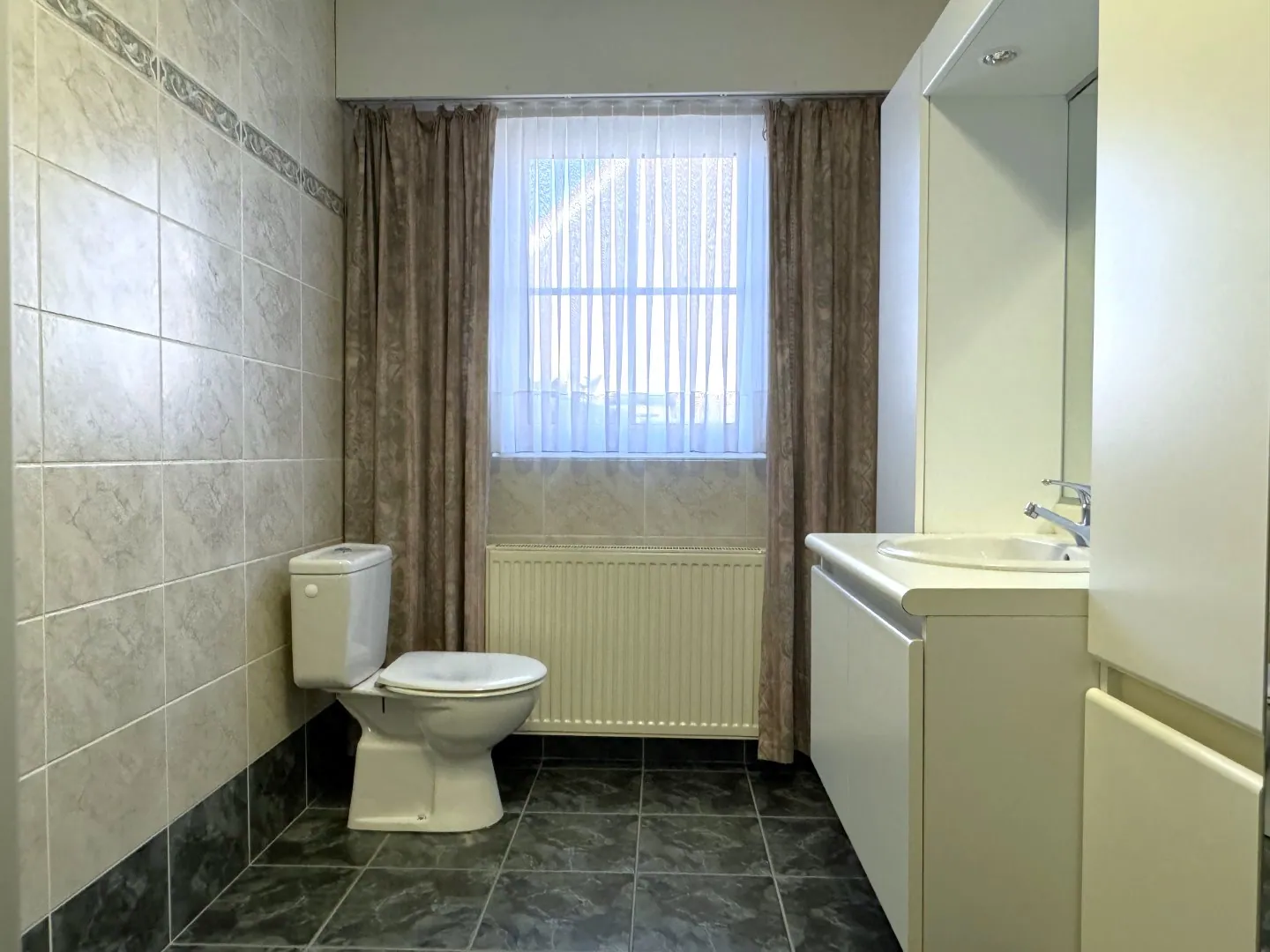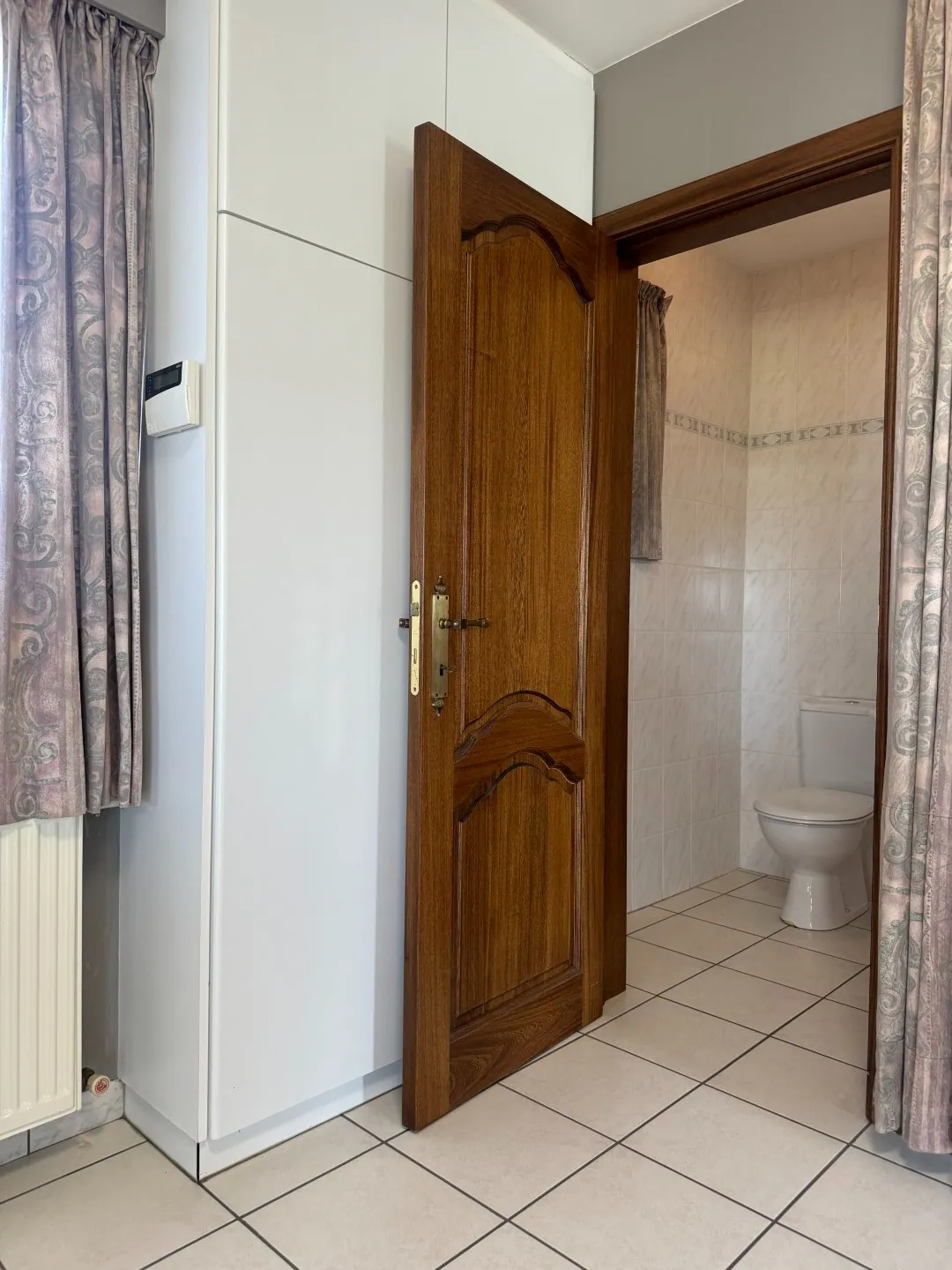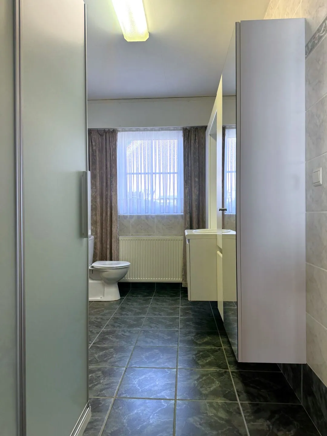 Slapen doen we aan de voorzijde. No worries, je woont sowieso in een rustige straat, en de rolluiken zorgen voor extra gemoedsrust. Er is 1 slaapkamer, maar het is meteen wel een goeie: heerlijk ruim (dus neem dat robuuste bed met die grote eiken kast maar mee), en aansluitend de badkamer. Deze is met een douche, badkamermeubel een toilet.