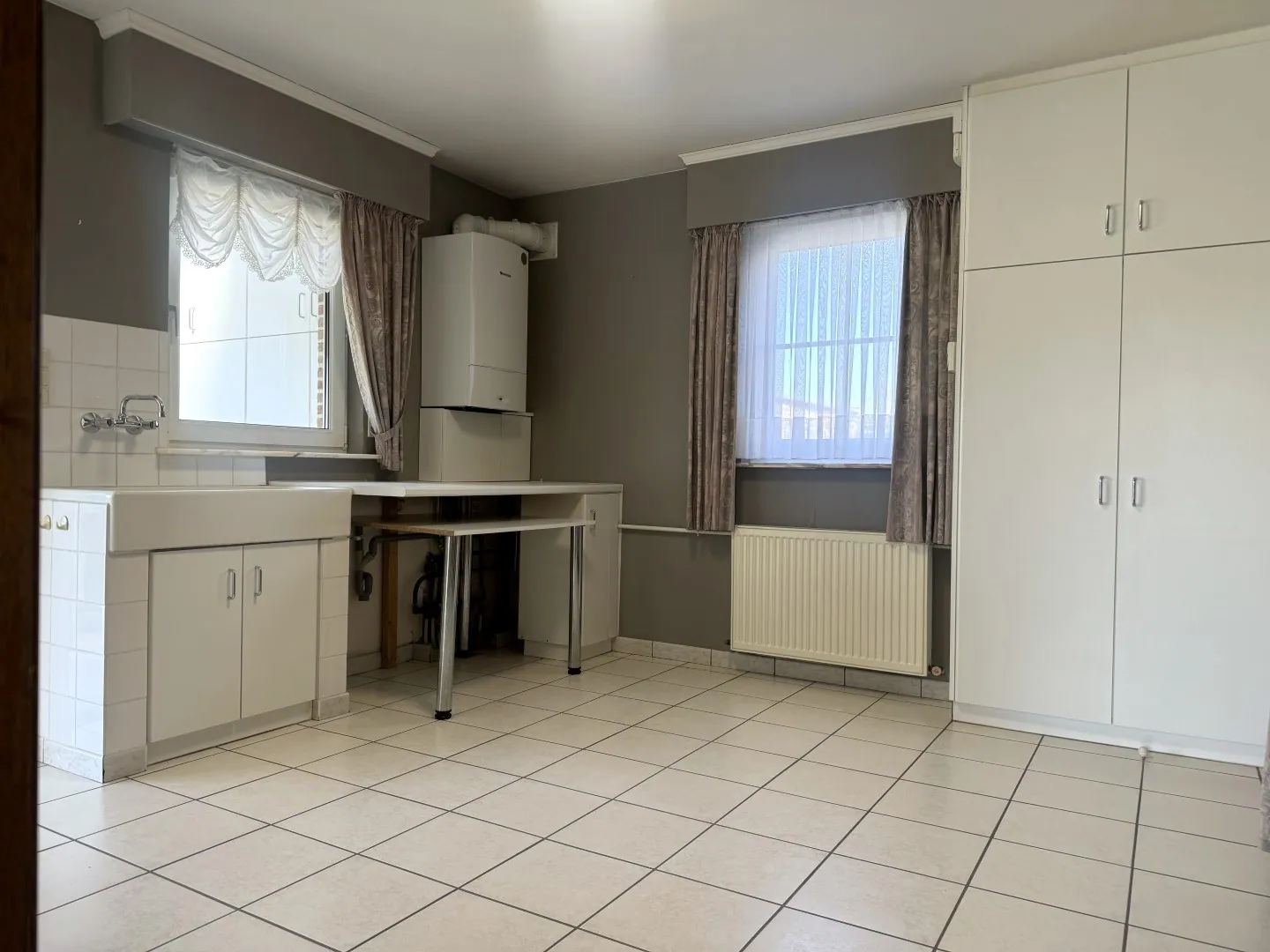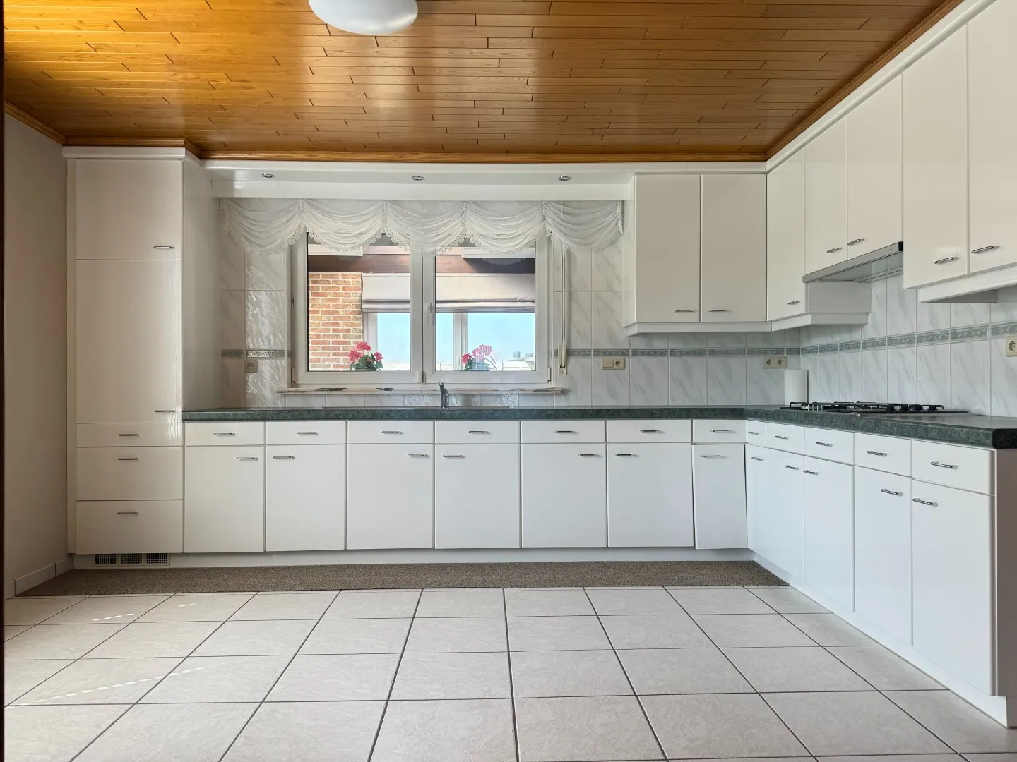 Door de dubbele deur komen we in de keuken. En je had het al verwacht zeker? Net zoals vroeger is dit echt het hart van het huis: méér dan voldoende groot om al je familieleden uit te nodigen op een zondagsbrunch, heel wat bergruimte en lekker veel werkblad.