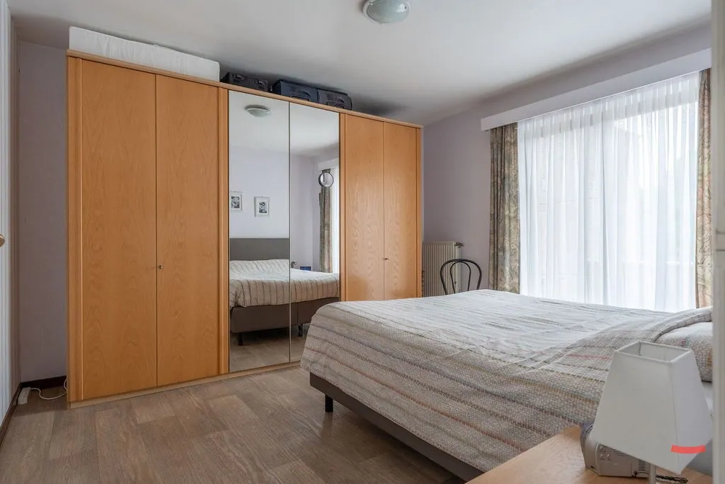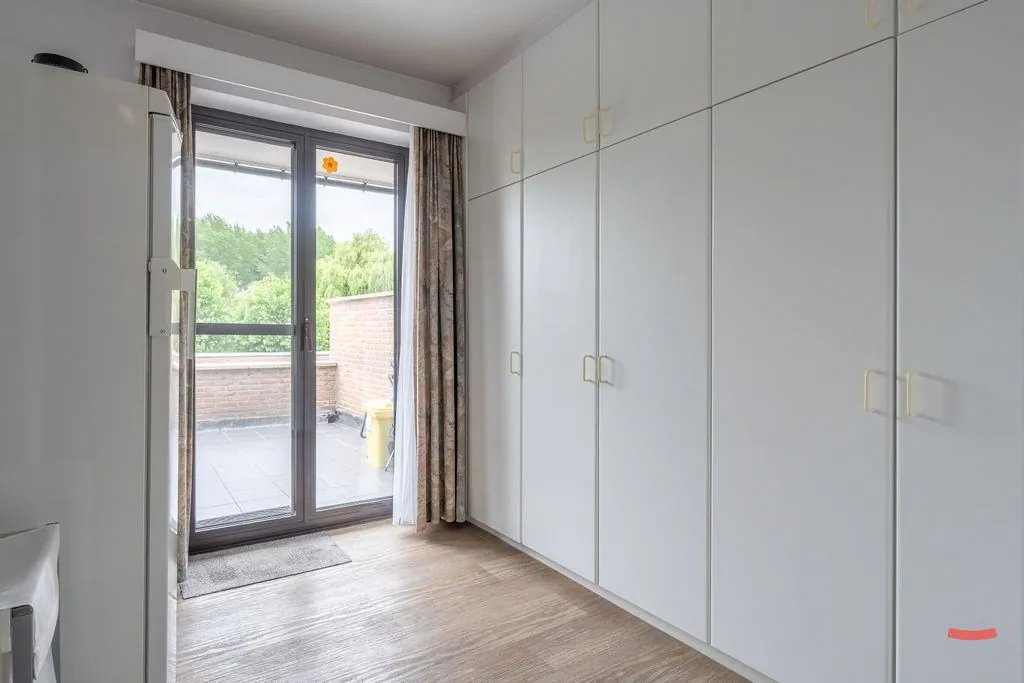 De slaapkamers zitten aan de ... achterzijde, dus je hoeft (letterlijk) niet wakker te liggen van het verkeer. De kleine slaapkamer – momenteel voorzien van een kastenwand – geeft toegang naar het heerlijk groot balkon. Wist je trouwens dat je zo’n groen zicht had aan deze kant van de Grote Baan?