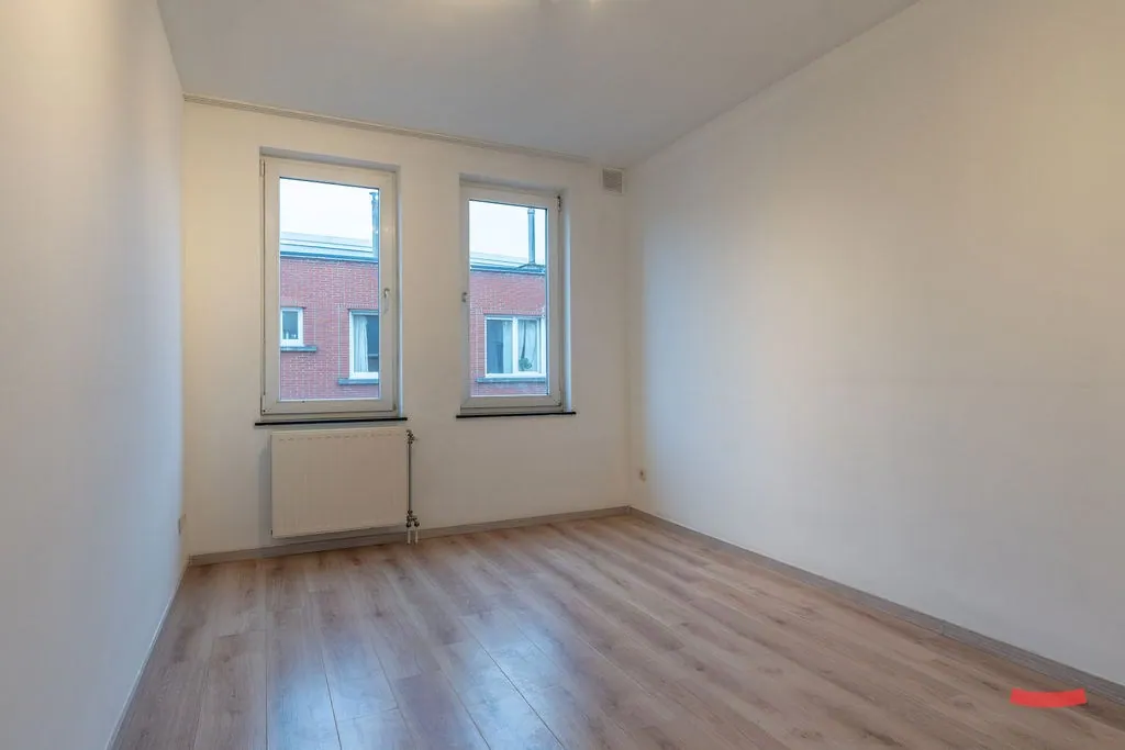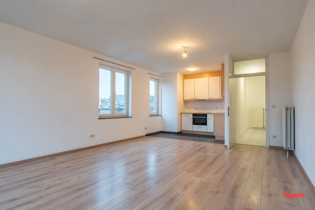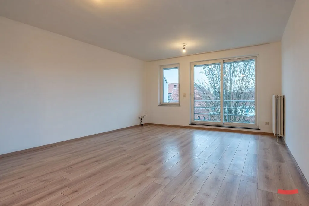 Via de inkomhal stappen we de woonkamer in. Geen donkere hokjes, maar een open, lichte lay-out voor wonen en koken. De laminaatvloer werd recent vervangen, en de keuken kreeg een update met nieuwe toestellen. Aansluitend bij de woonkamer heb je toegang naar het grote, overdekte balkon.