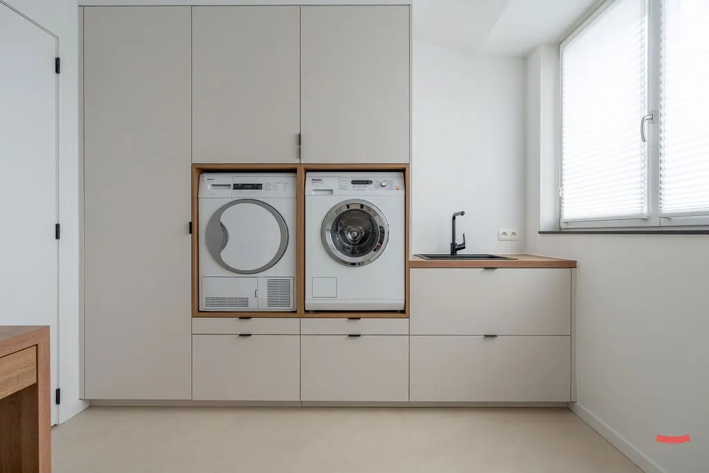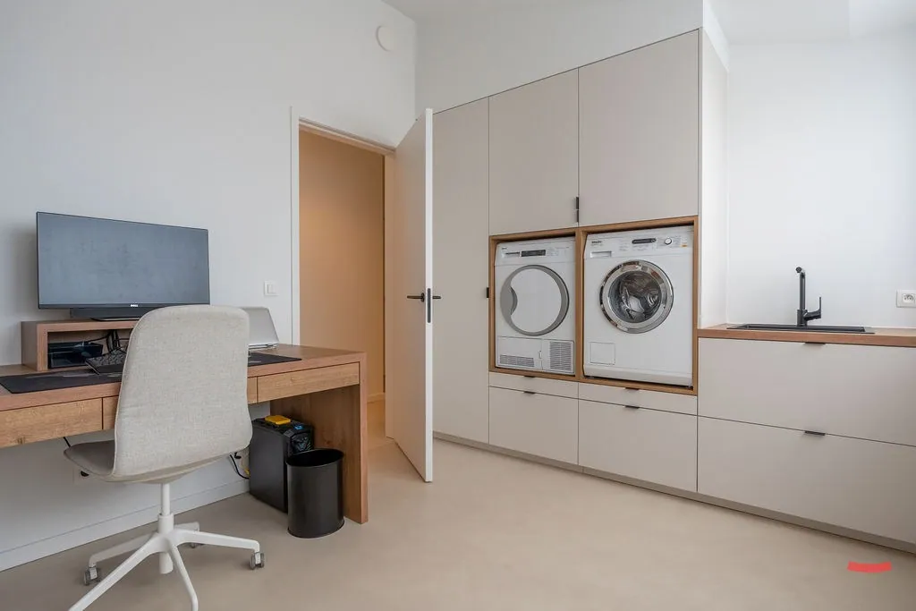 Liever een 2de of 3de kamer echt als slaapkamer gebruiken? No problemo, de wasmachine bv. kan ook geïnstalleerd worden in de aparte bergplaats. En uiteraard, ook daar werden de kasten voor jou al geplaatst.